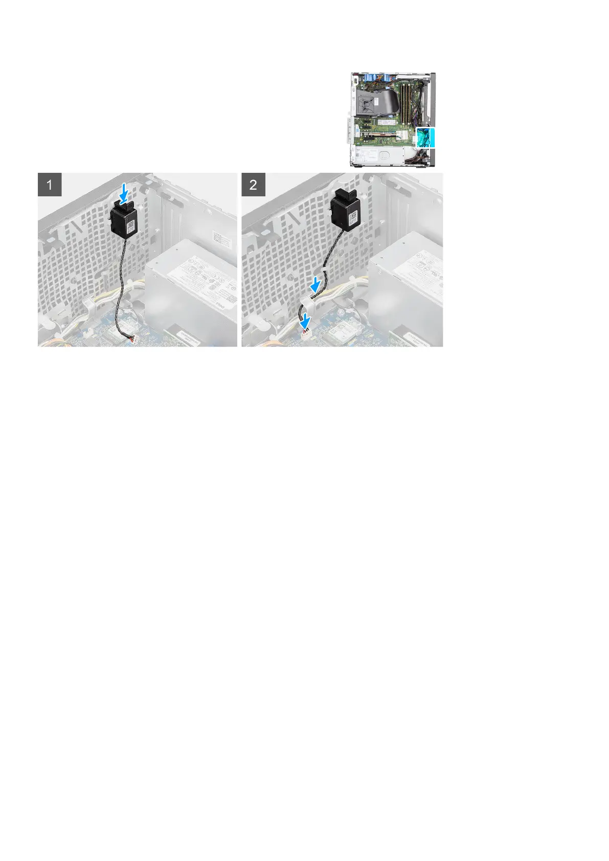 2. Connect the speaker cable to the connector on the system board.