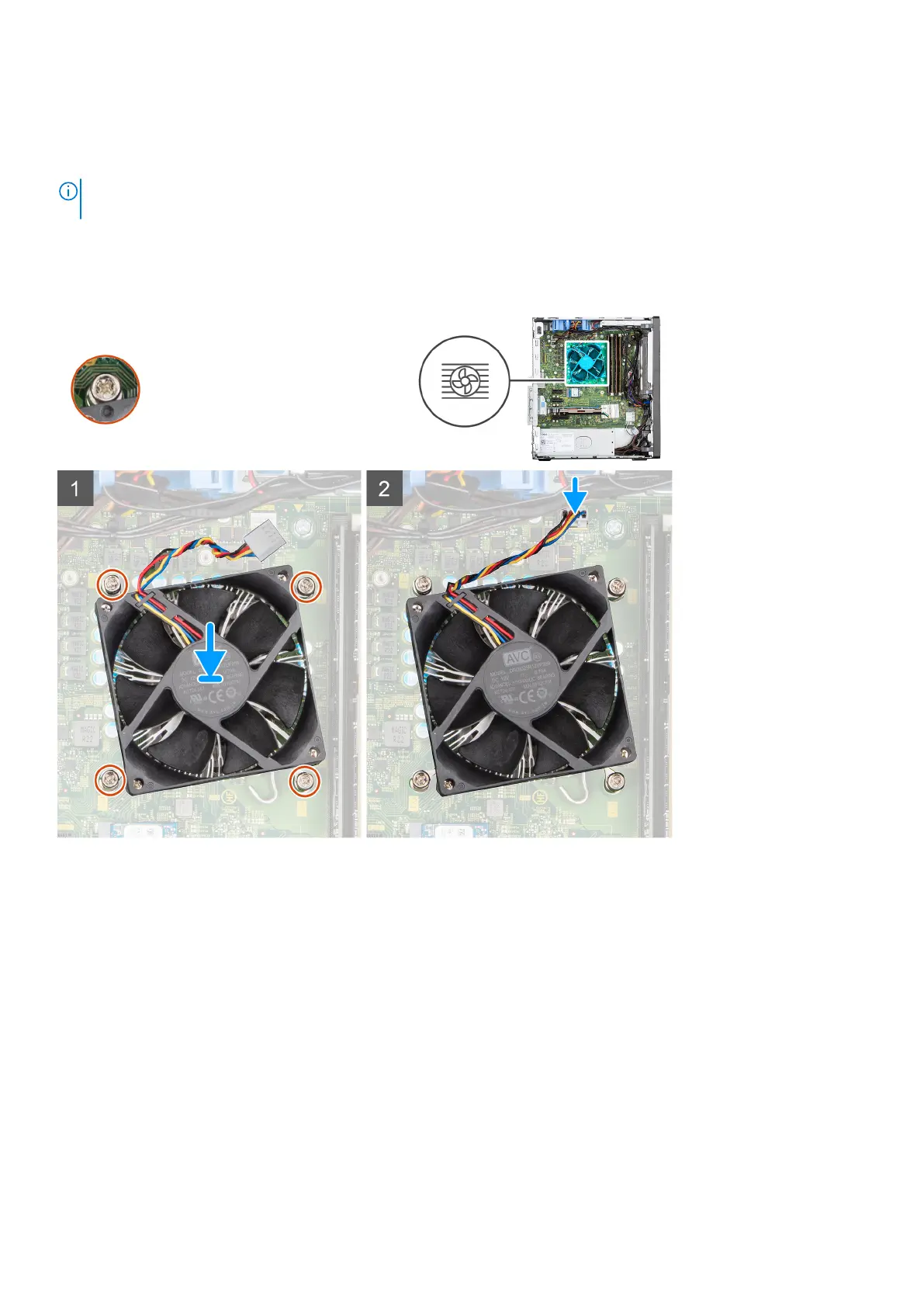 1. Align the screw holes on the processor fan and heat-sink assembly with the screw holes on the system board.