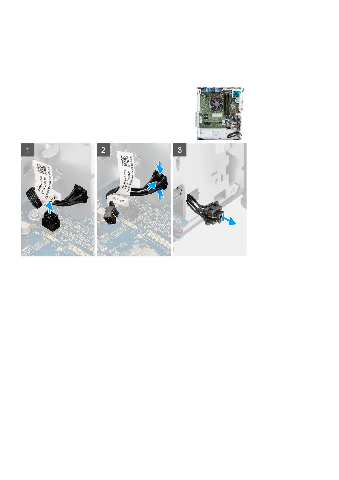 2. Press the release tabs on the power-button head and slide the power-button cable out from the front-side chassis of the