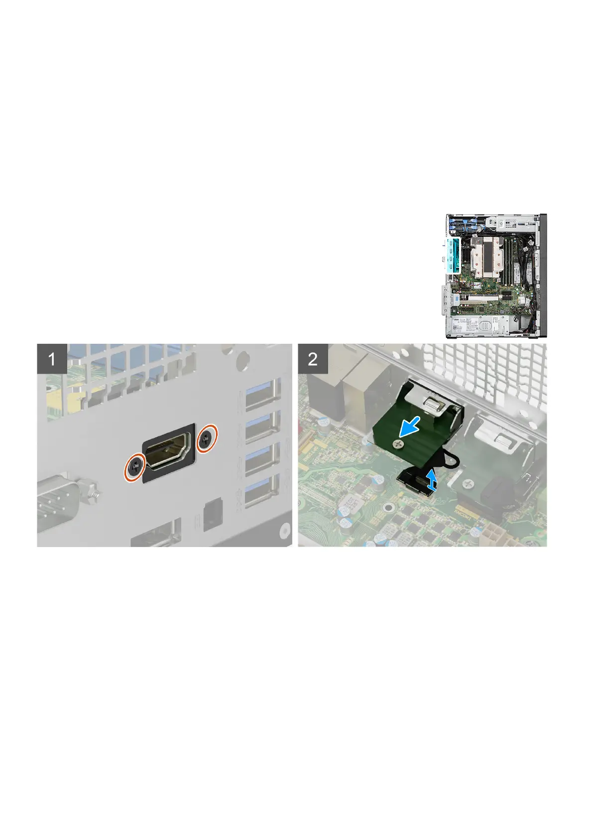 1. Remove the two (M3X3) screws that secure the optional HDMI module to the computer chassis.