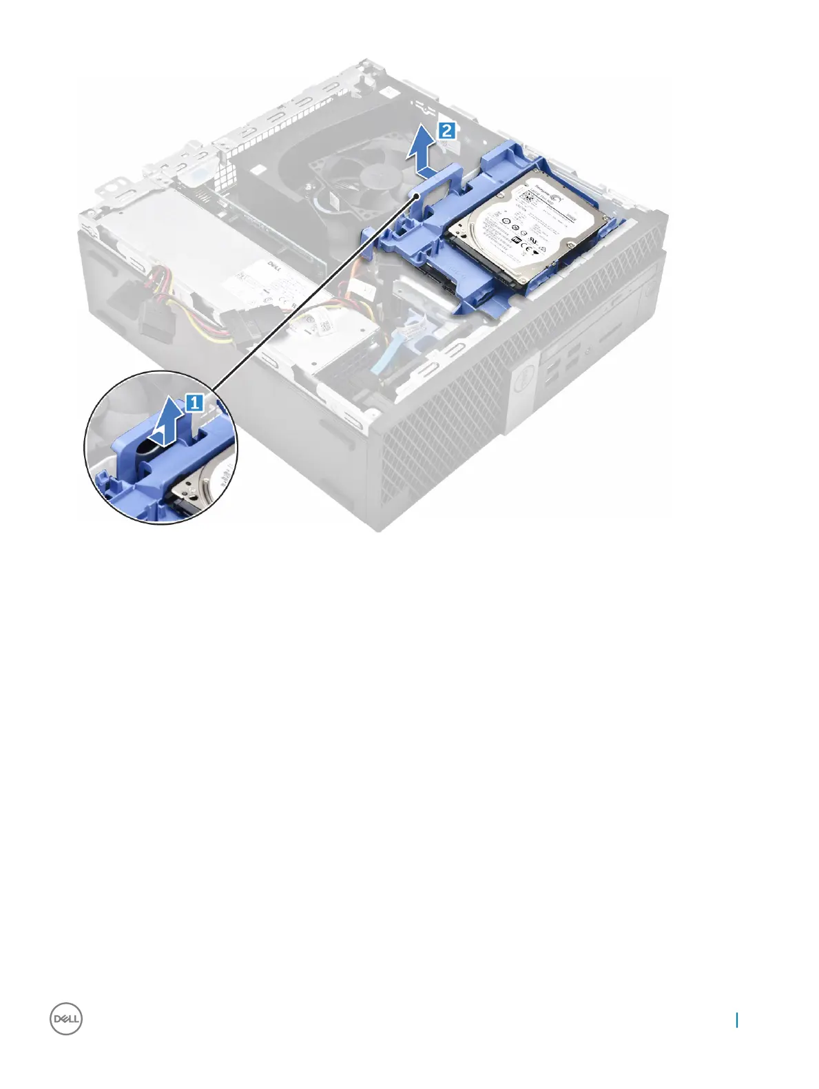 b Lift the drive out of the 2.5-inch drive bracket [2].