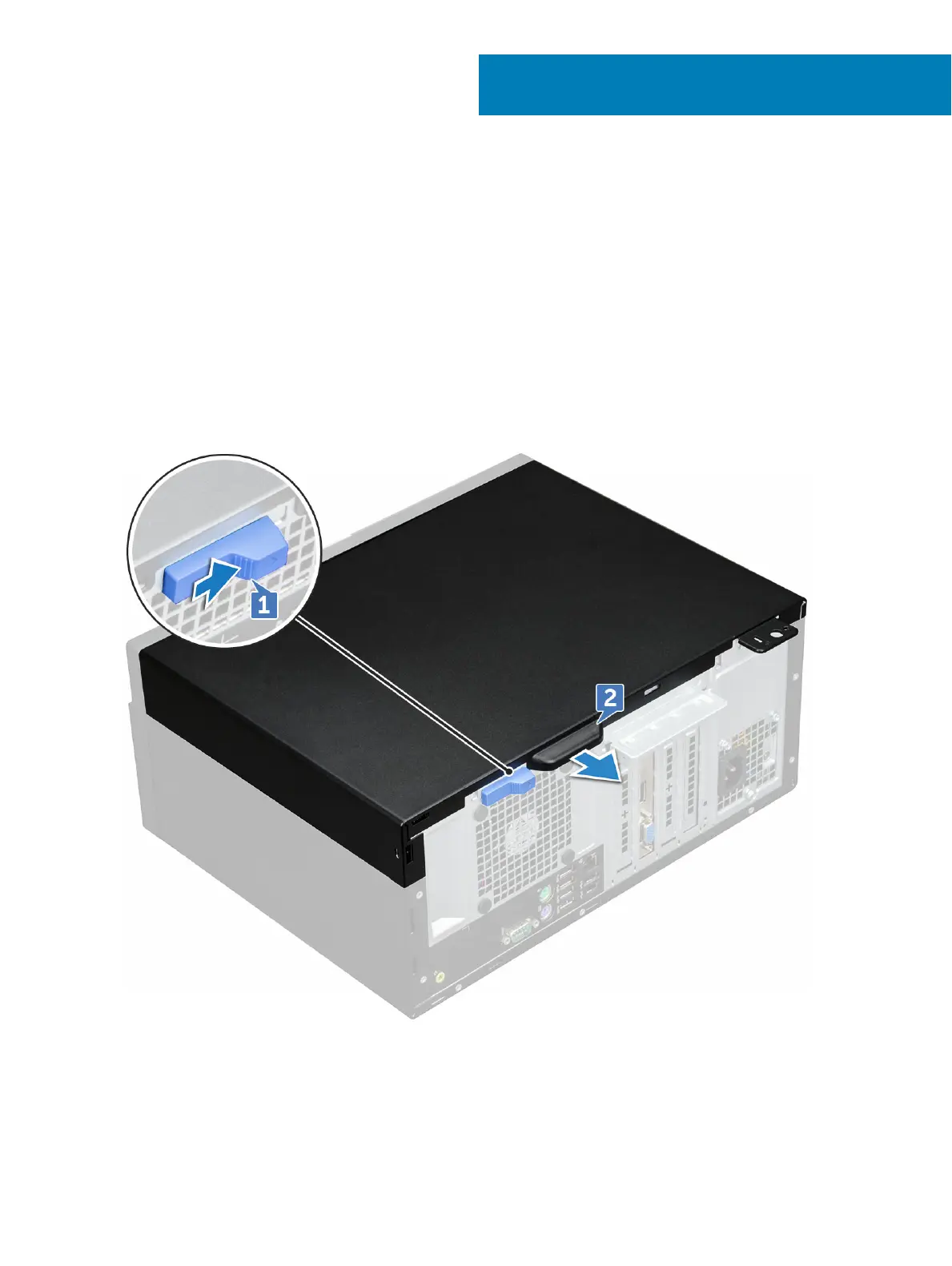 a Slide the latch (blue tab) to release the back cover from the computer [1].