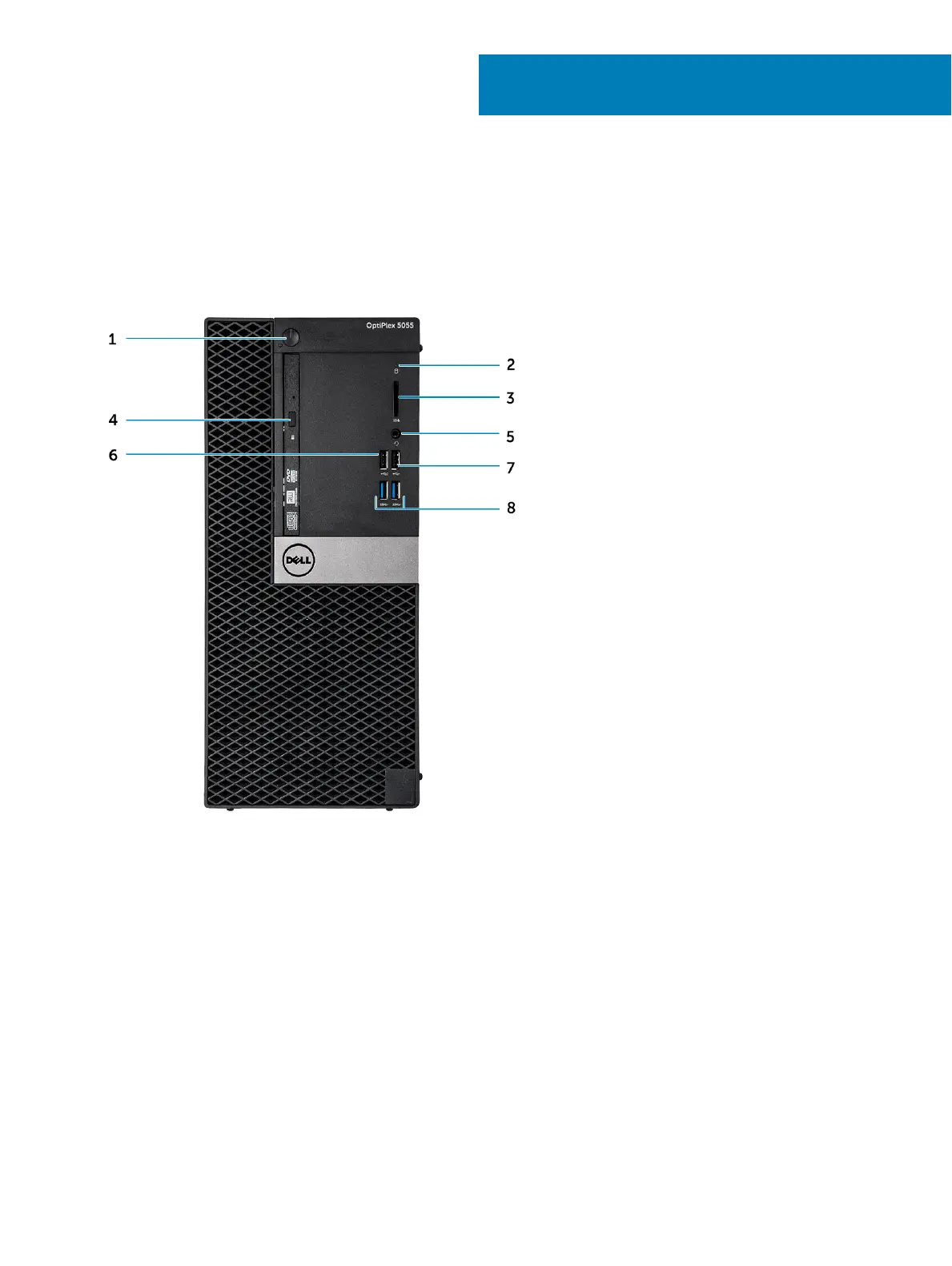 Dell OptiPlex 5055 Tower - Chassis Components; Front Chassis View
