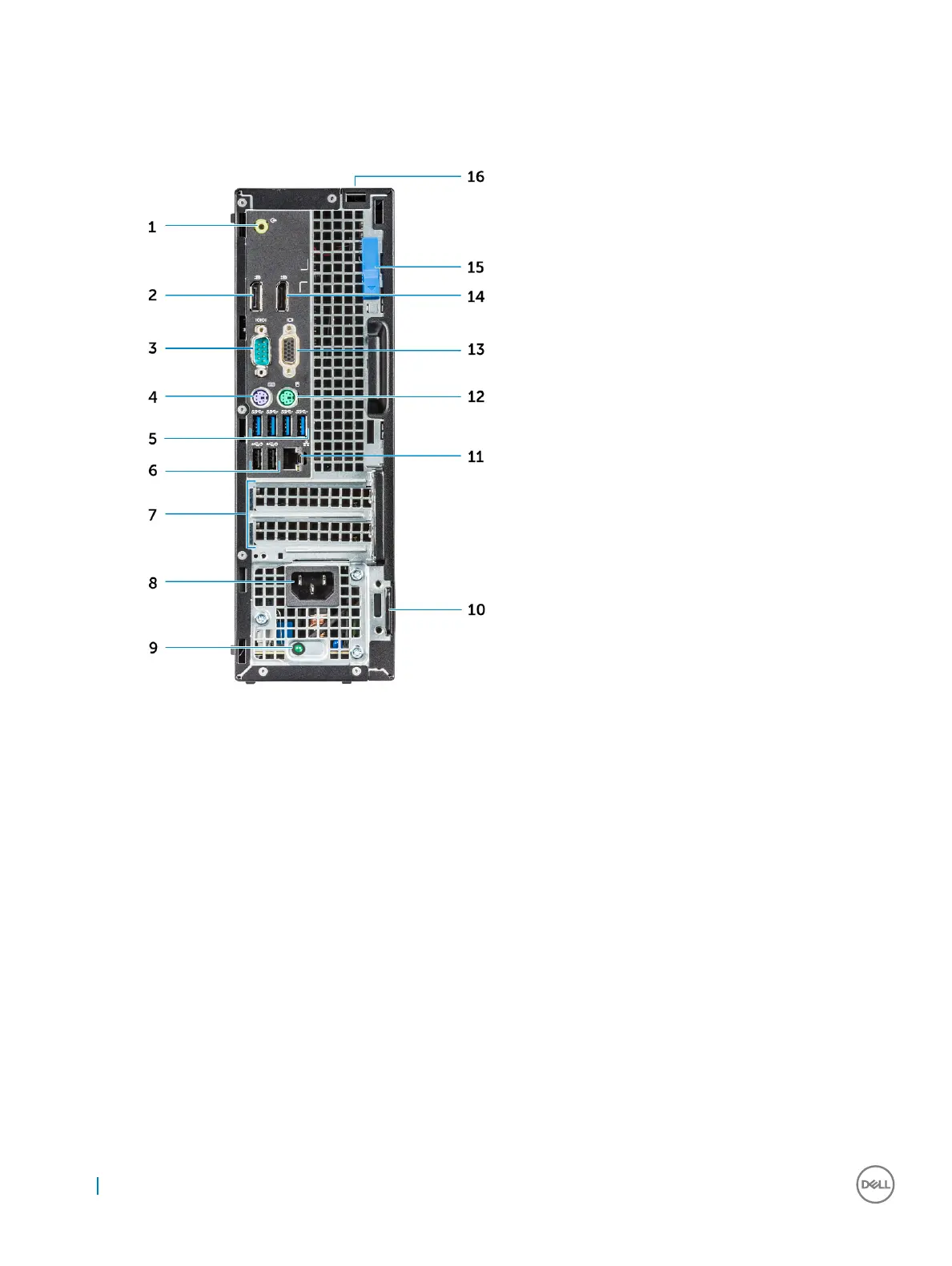 9 Power supply diagnostic light 10 Kensington security cable slot