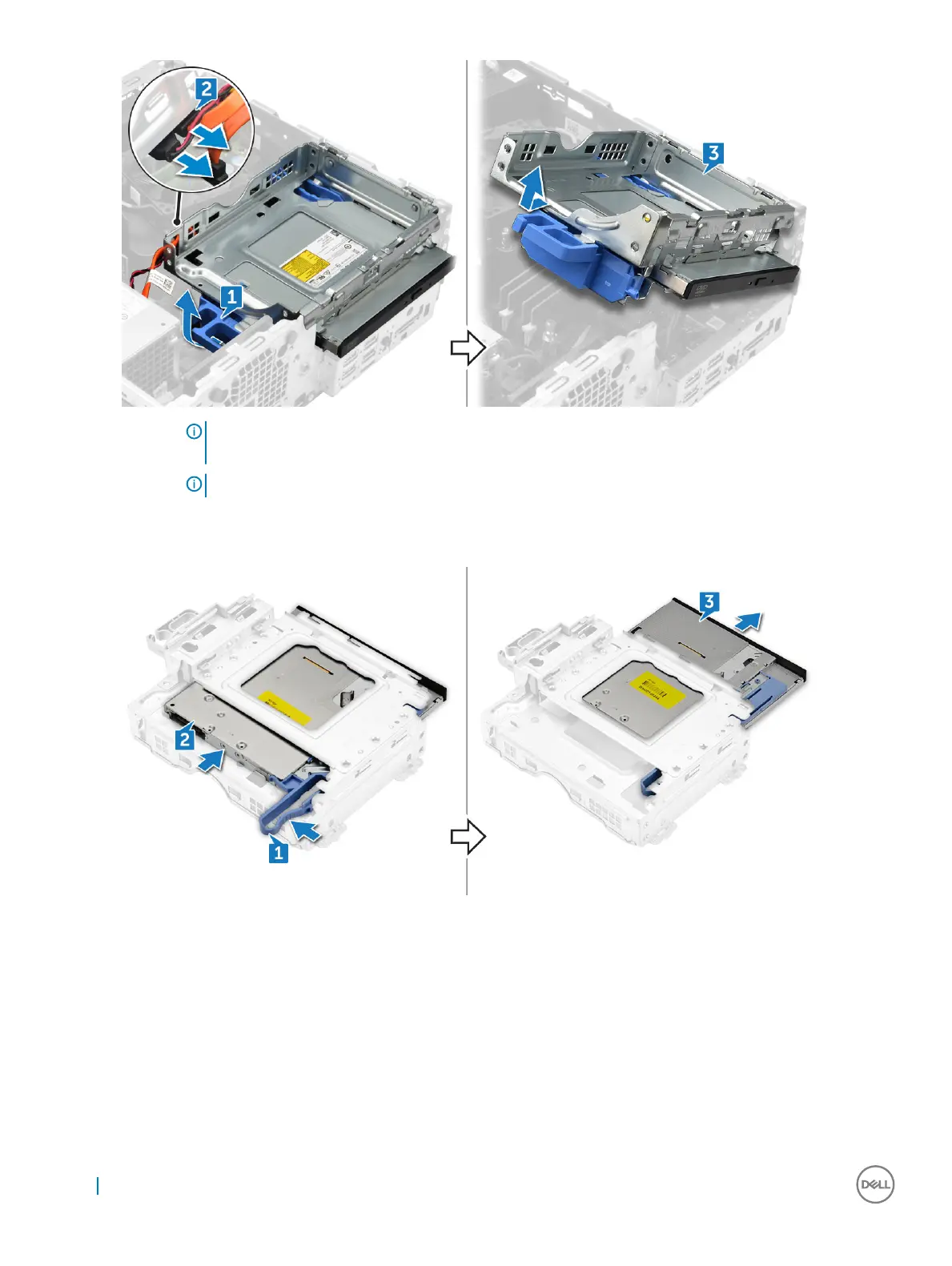 NOTE: After releasing the Optical drive, you can also ip the drive assembly for easy access to the drive