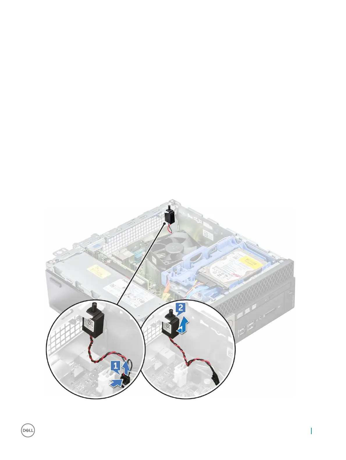 a Disconnect the intrusion switch cable from the connector on the system board [1].