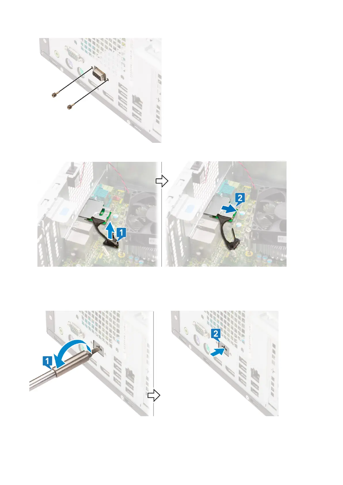 2. Insert the VGA module into its slot from the inside of your computer [1] and connect the VGA cable to the connector on the