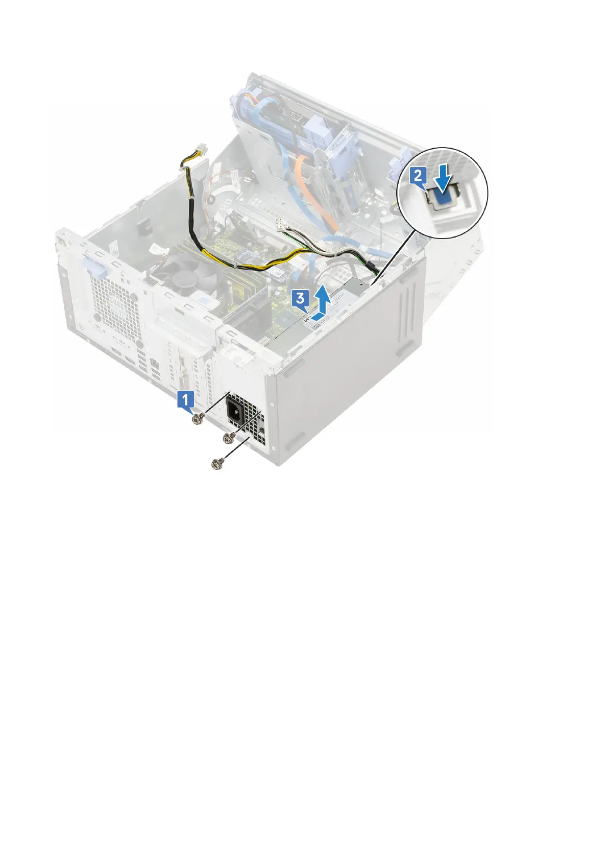 b. Replace the three screws to secure the PSU to the computer [2] .