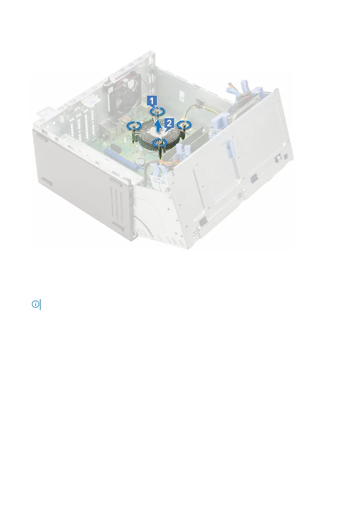 2. Tighten the captive screws to secure the heat sink to the system board [2].