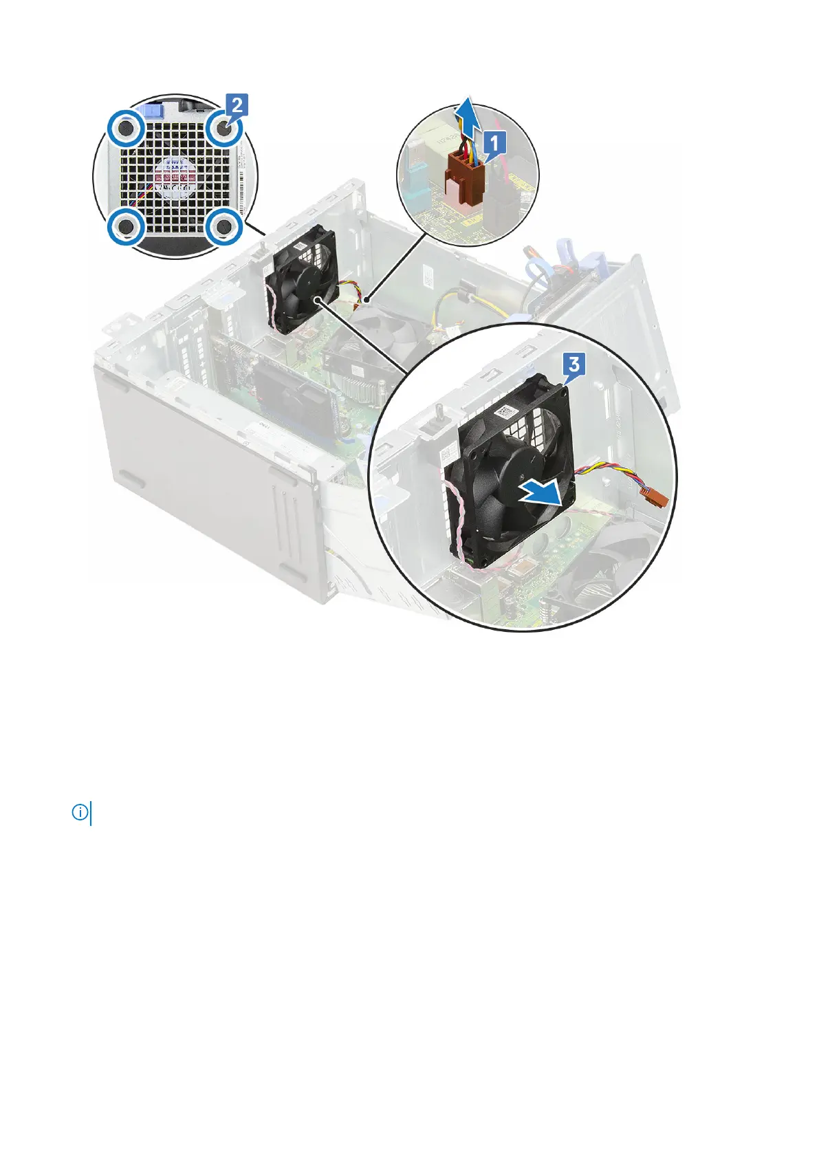 4. Pass the grommets through the corresponding grooves on the system fan [1].