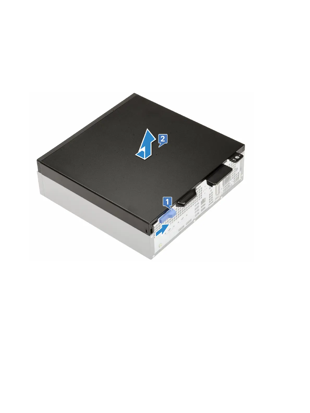 a Slide the release latch on the back side of your system until it gives a click sound to unlock the side cover [1].