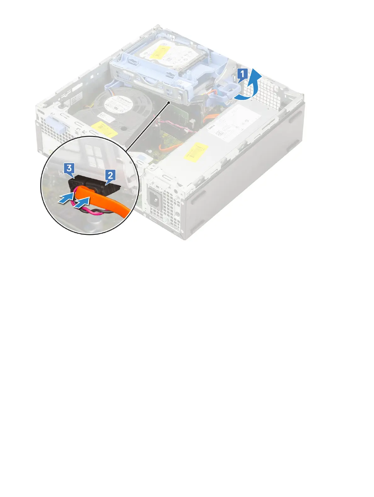 4 Connect the hard drive data cable and hard drive power cable to the connectors on the hard drive [1,2].