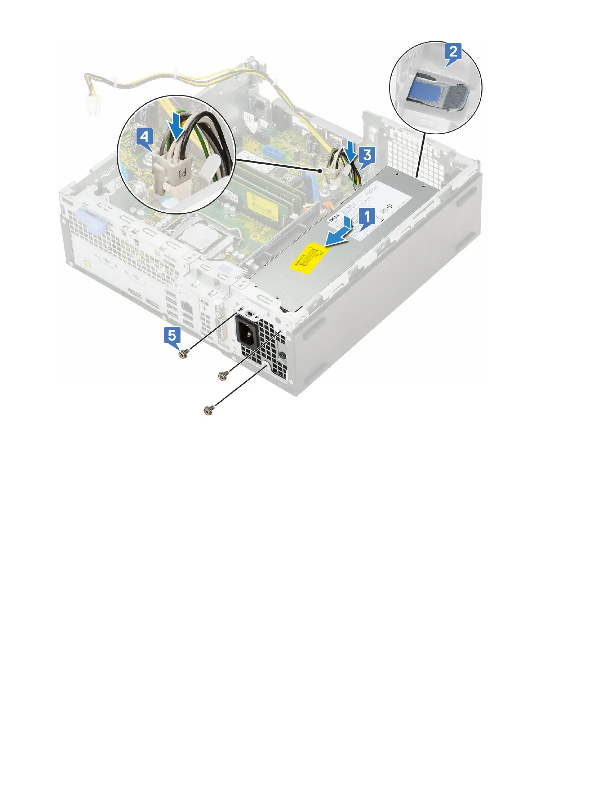 5 Route the CPU power cable through the retention clips [1].