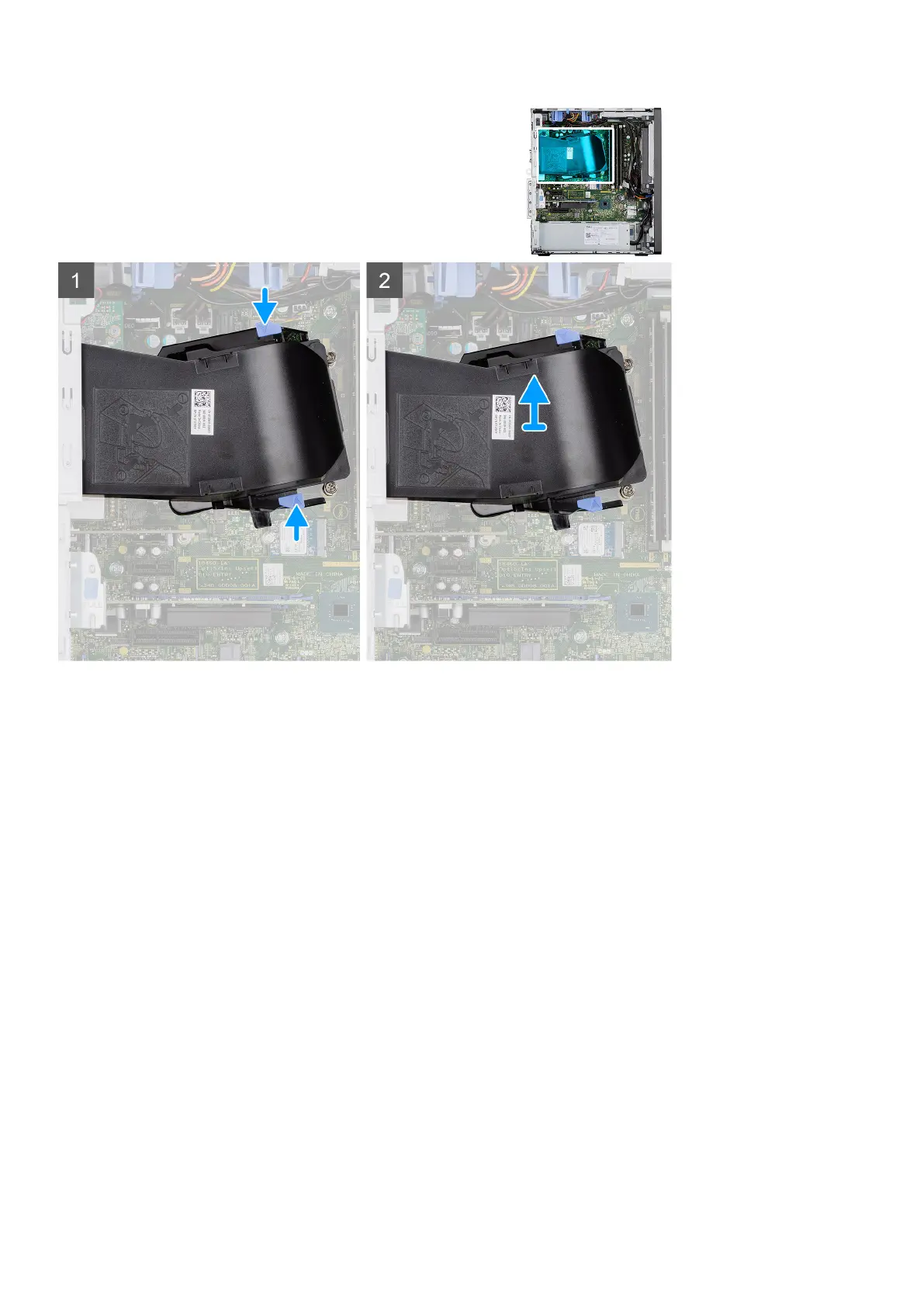 1. Press the retention tabs on both sides of the fan duct to release it.