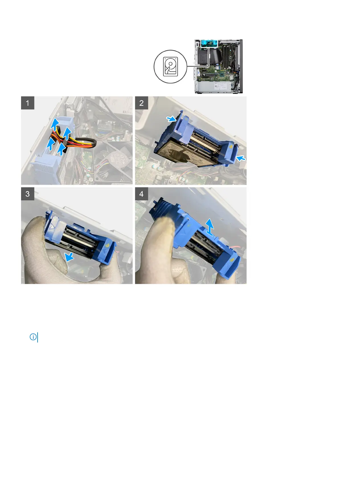 1. Disconnect the hard-drive data and power cables from the connectors on the 2.5-inch hard-disk drive module.