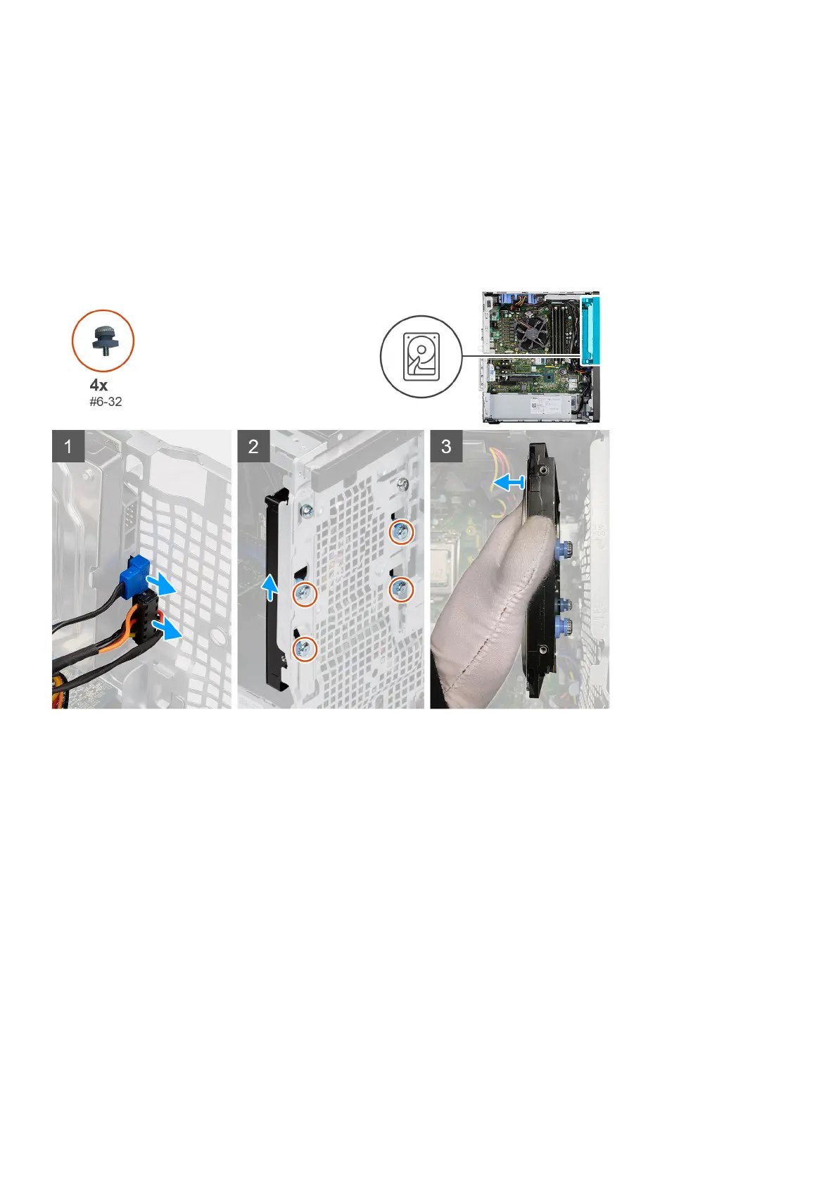 The following images indicate the location of the 3.5-inch hard-disk drive and provides a visual representation of the removal procedure.