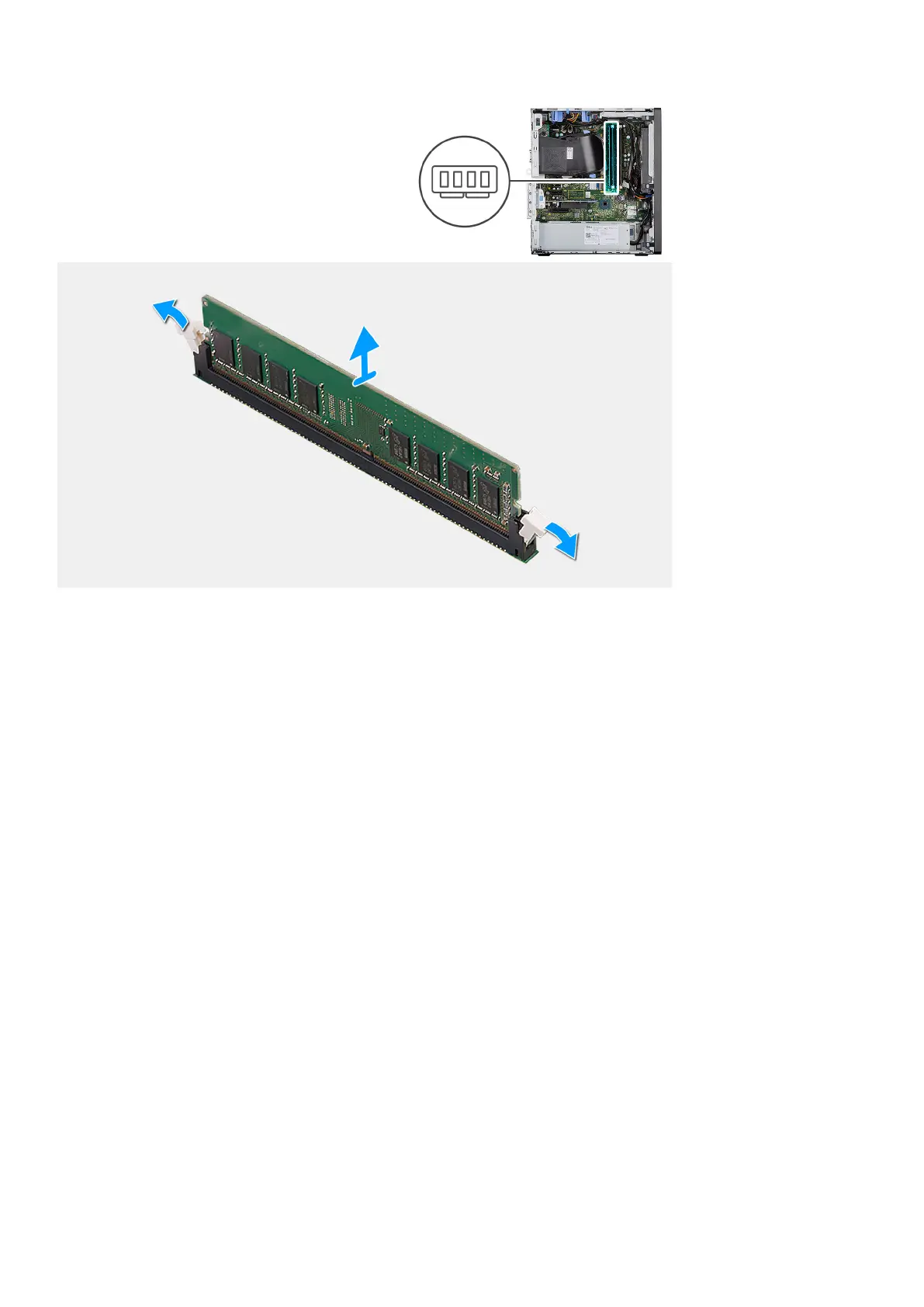 1. Pull the securing clips from both side of the memory module until the memory module pops up.