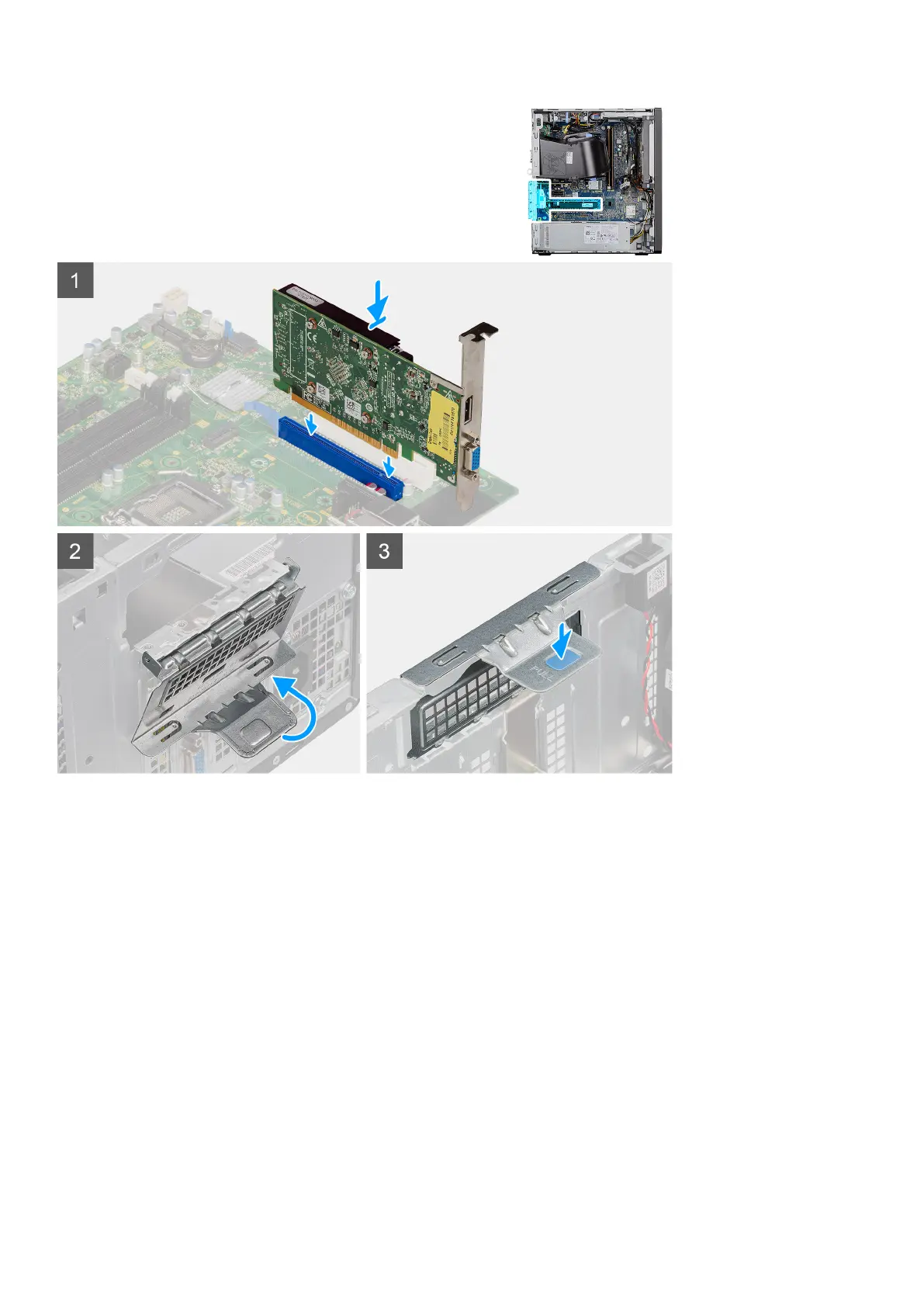 3. Lift the pull tab to close the PCIe door.