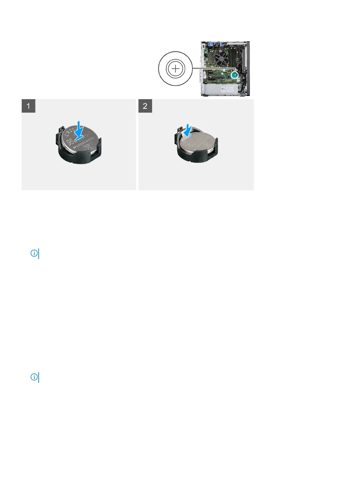1. Insert the coin cell battery with the "+" sign facing up and slide it under the securing tabs at the positive side of the connector.