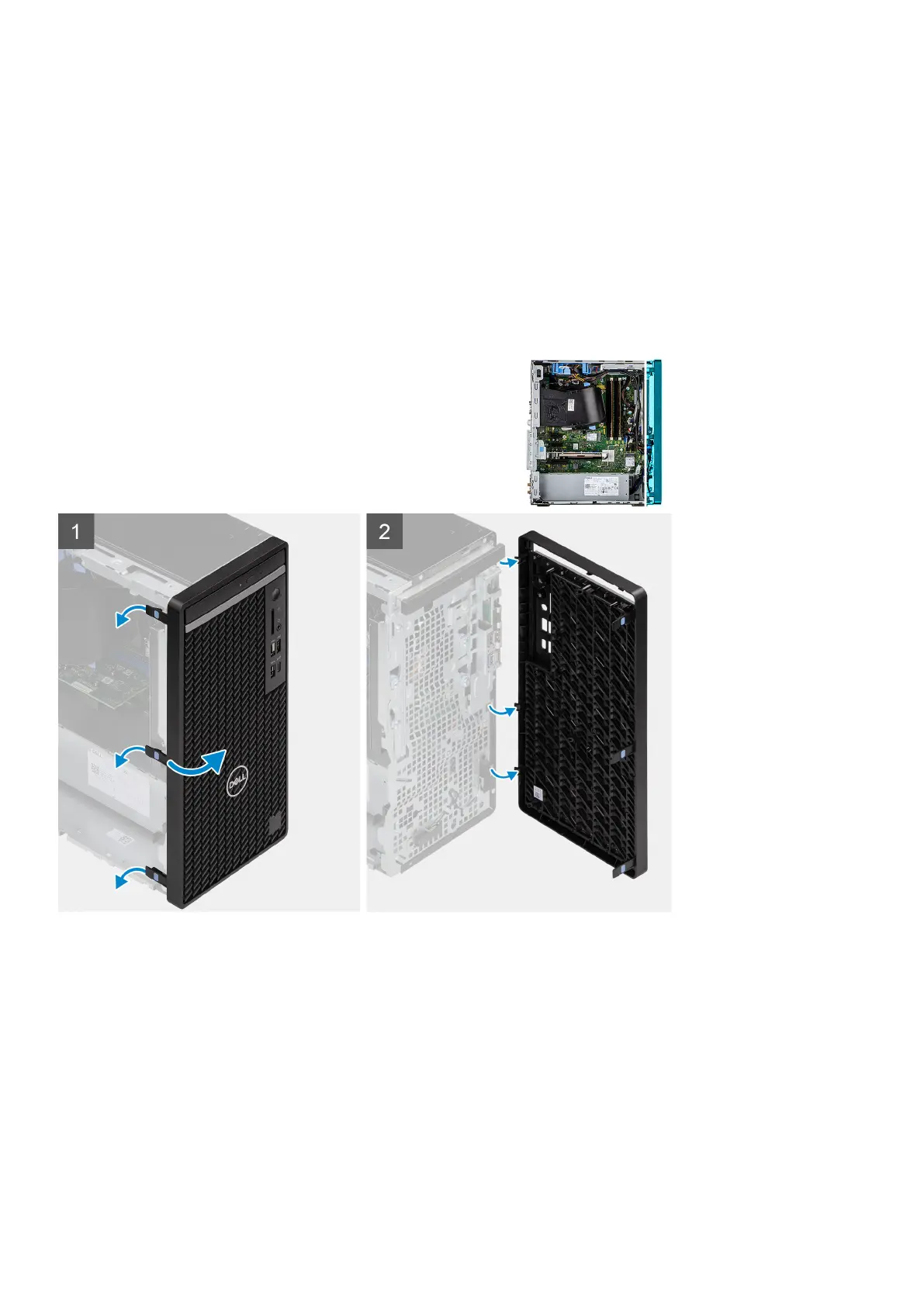 2. Slightly pull the front bezel and gently rotate to release the other tabs on the bezel from the slots in the computer chassis.