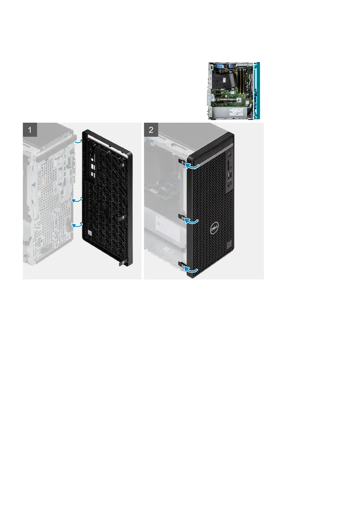 The following image indicates the location of the front bezel and provides a visual representation of the installation procedure.