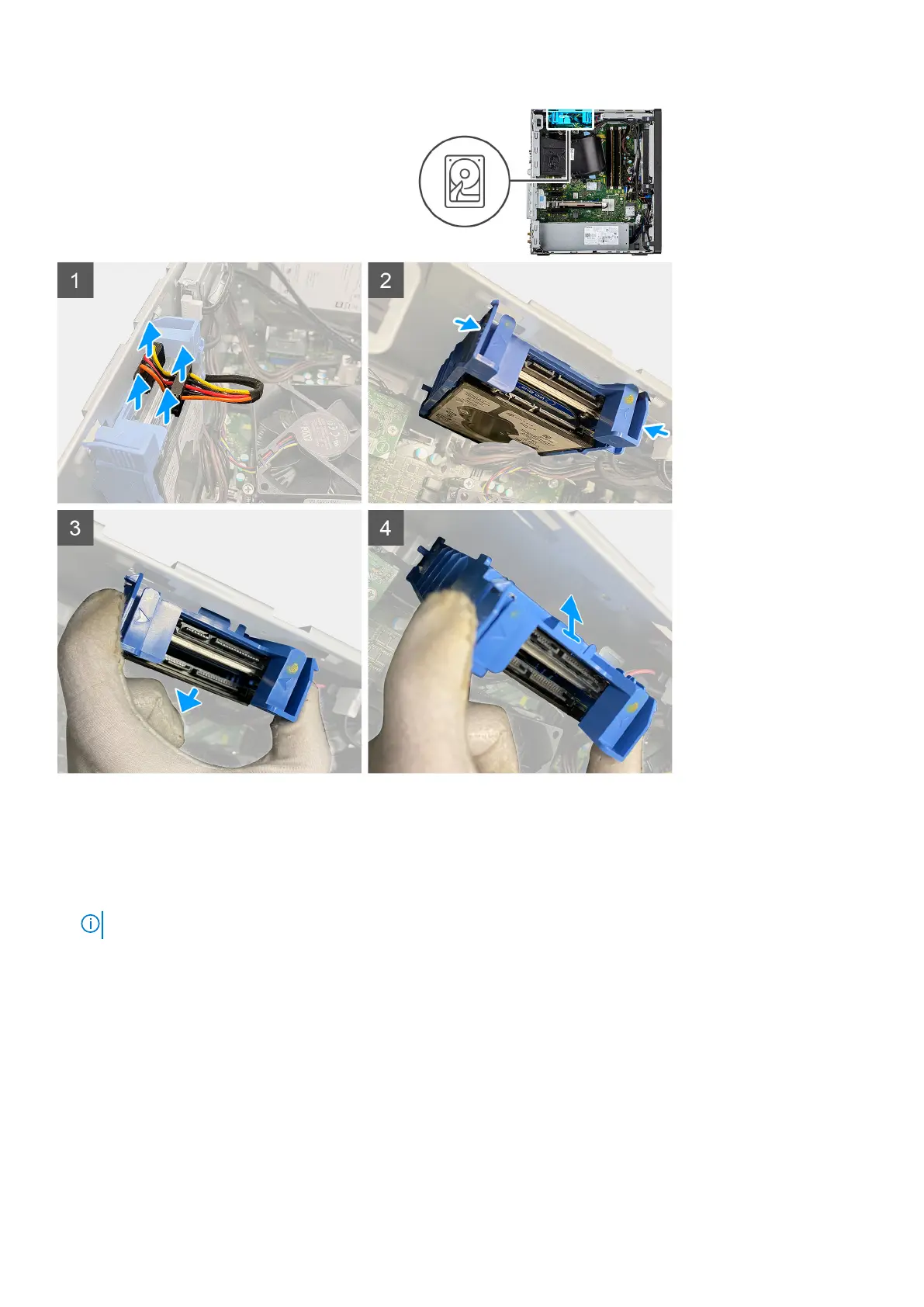 1. Disconnect the hard-drive data and power cables from the connectors on the 2.5-inch hard-drive module.