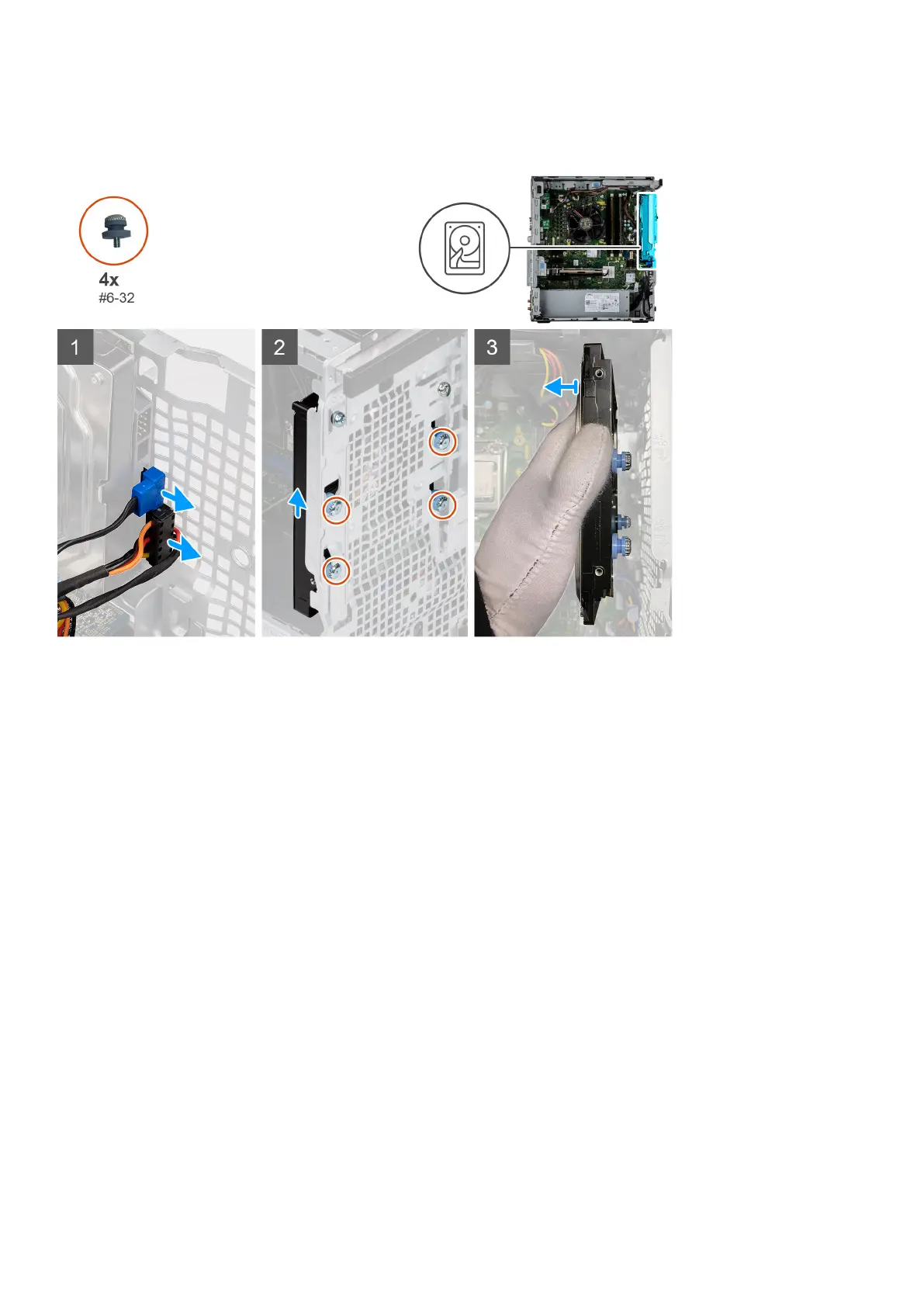 2. Remove the fours (#6-32) screws that secure the hard-disk drive to the chassis.
