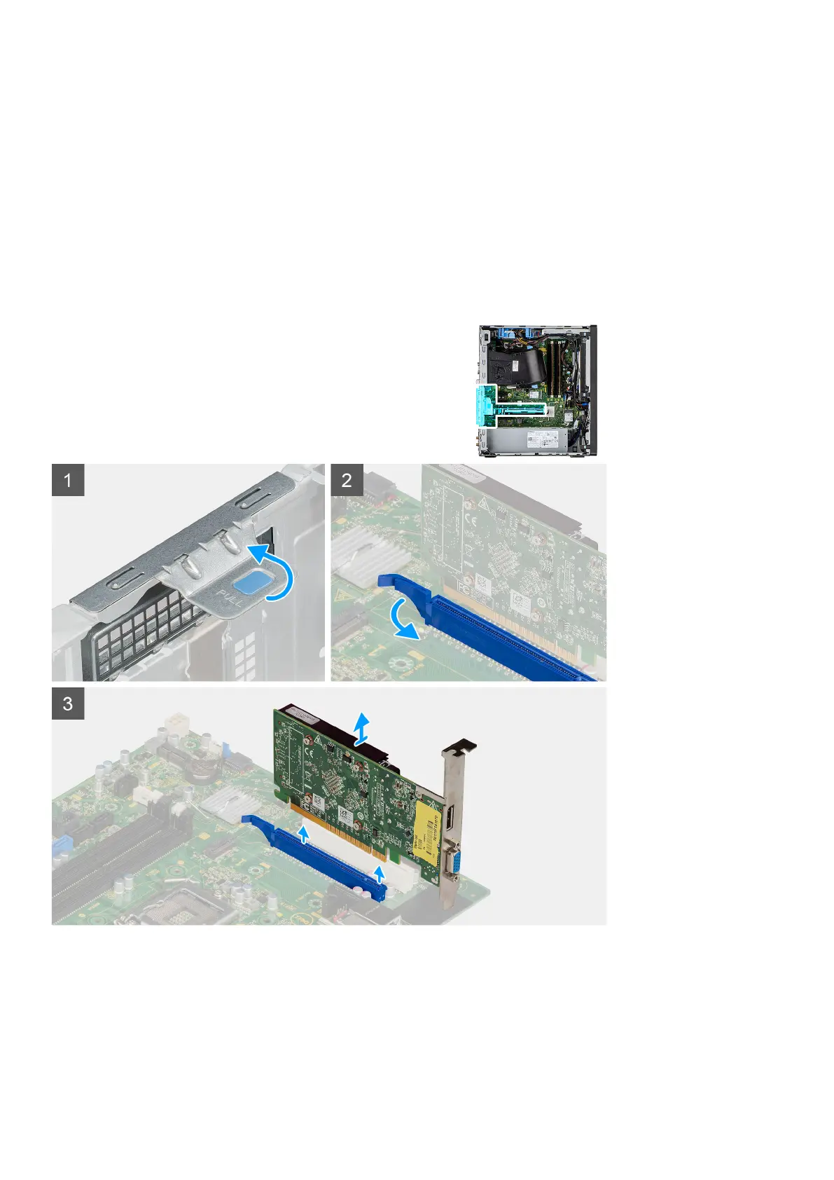 The following images indicate the location of the graphics card and provide a visual representation of the removal procedure.