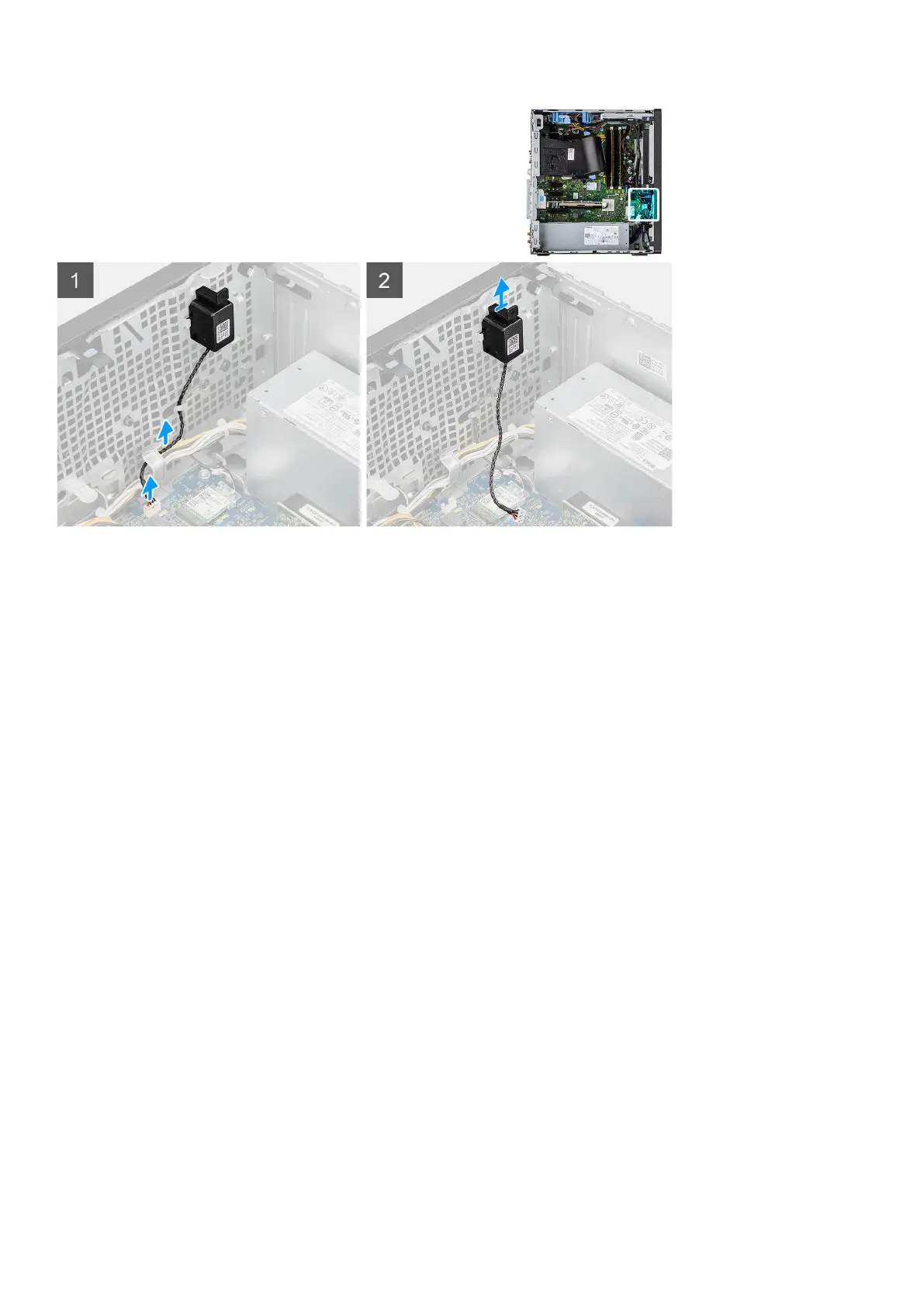 3. Press the tab and slide the speaker along with the cable from the slot on the chassis.