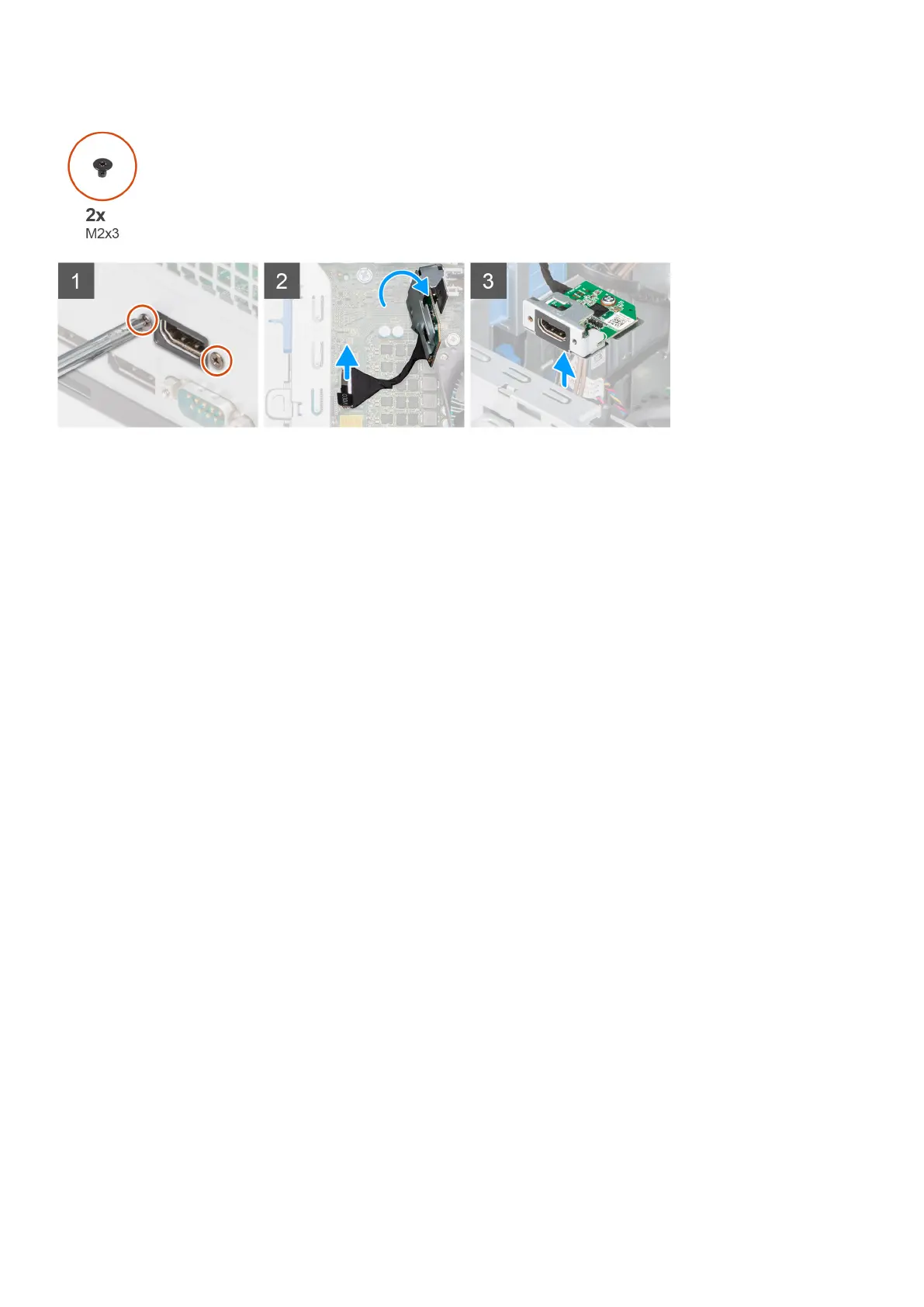 1. Remove the two (M3X3) screws that secure the optional i/O module to the computer chassis.