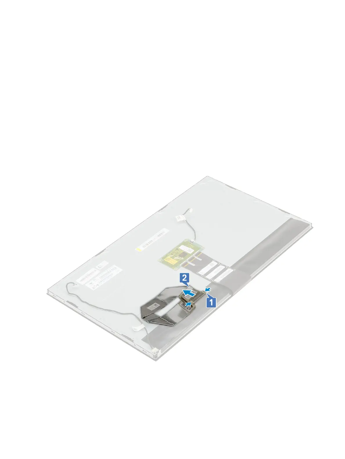 b Disconnect the cable, and lift it away from the display assembly base [2].