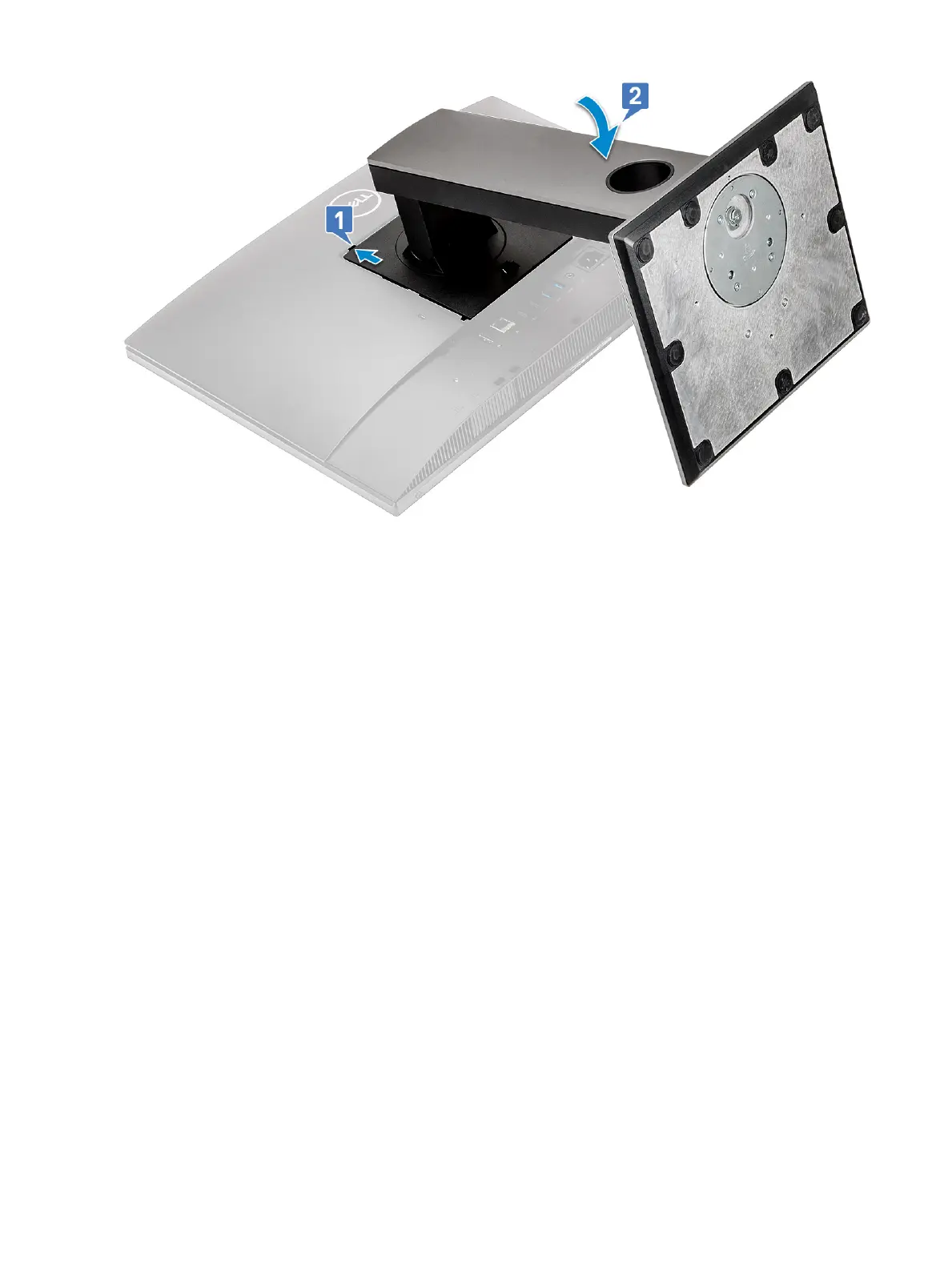 3 Press and hold the tab on the back cover to release it from the latch on the system-board shield and slide the back cover in the