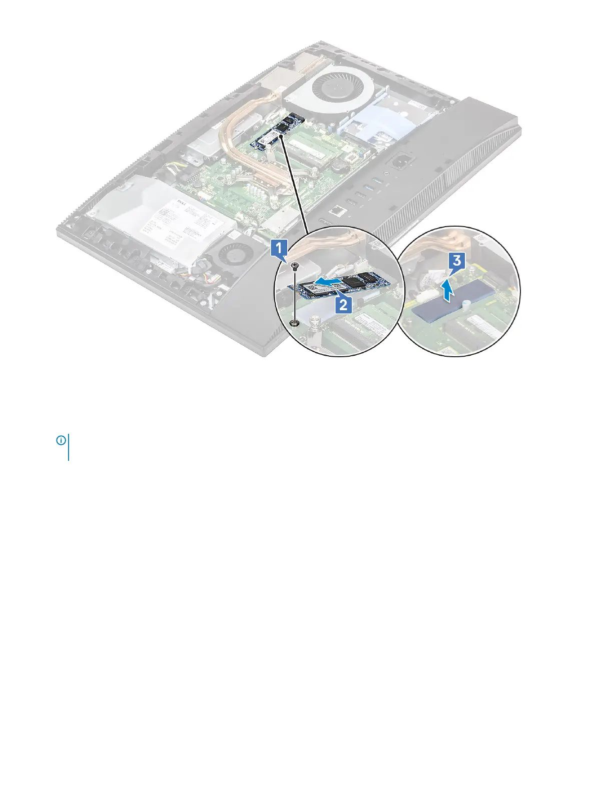 3 Replace the screw (M2x2.5) that secures the SSD card to the system board [3].
