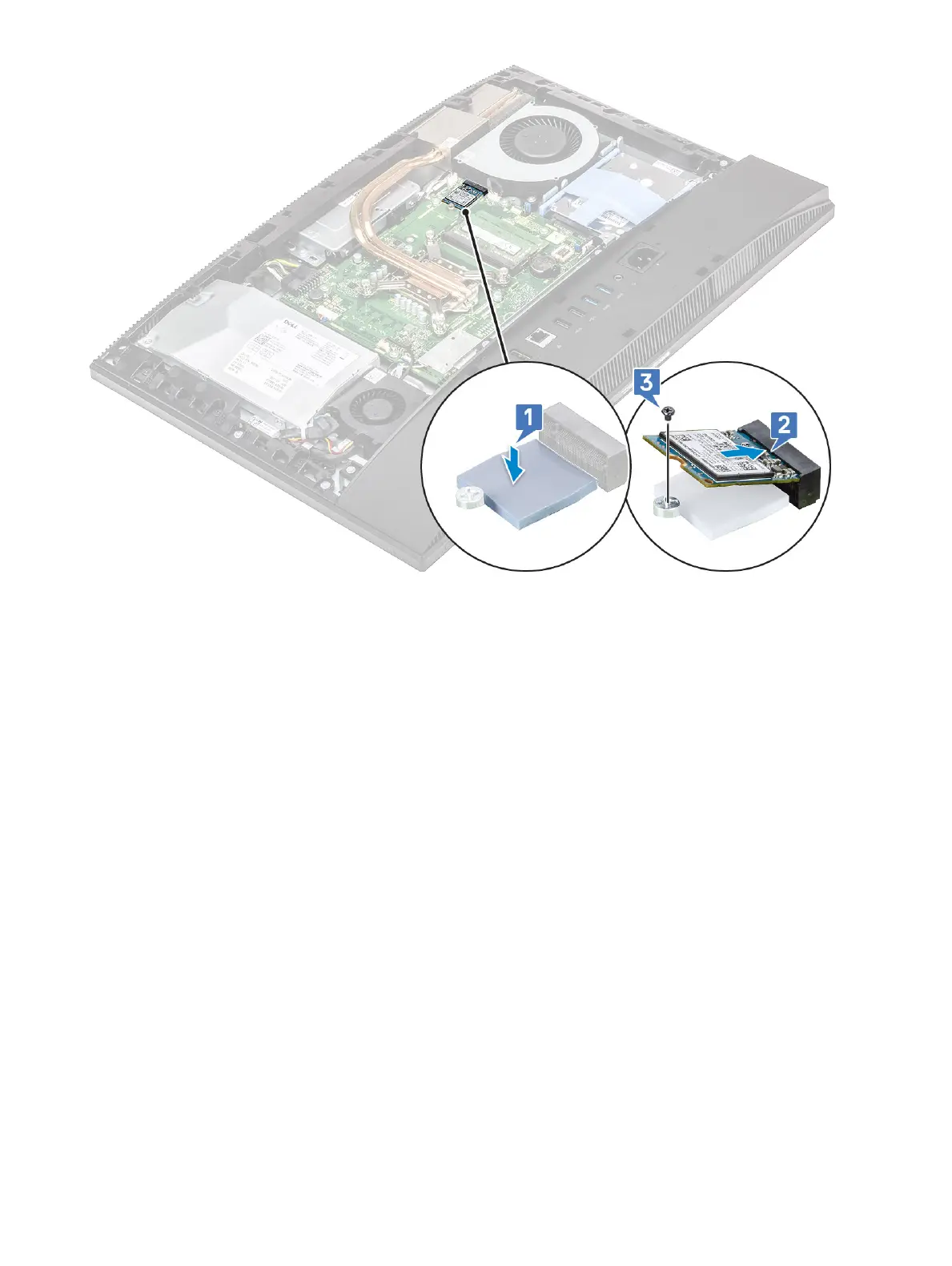 a Remove the two screws (M2x2.5) that secure the WLAN card shield to the system board [1].