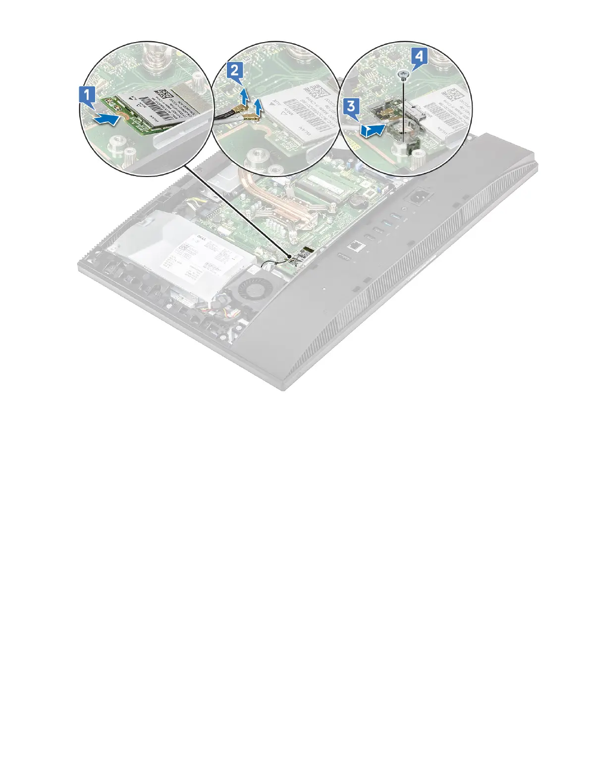 a Align the screw slot on the WLAN card shield with the screw slot on the system board and place the WLAN card shield on the