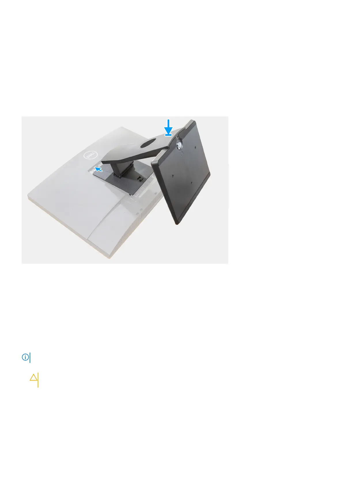 Align and insert the hooks on the mounting bracket on the stand into the slots on the monitor, until you hear a click.