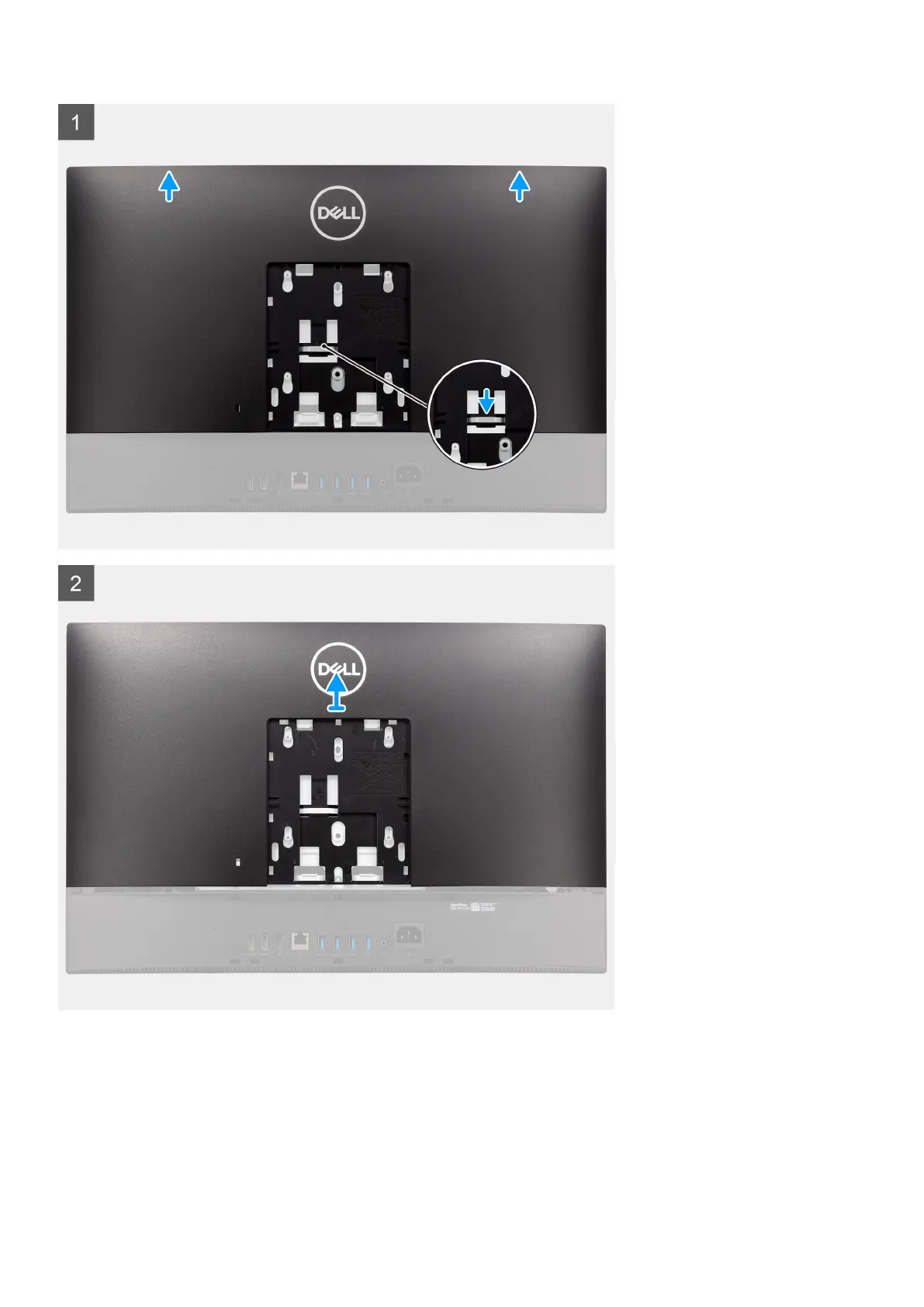 1. Press and hold the release tab on the back cover to release it from the latch on the system-board shield.
