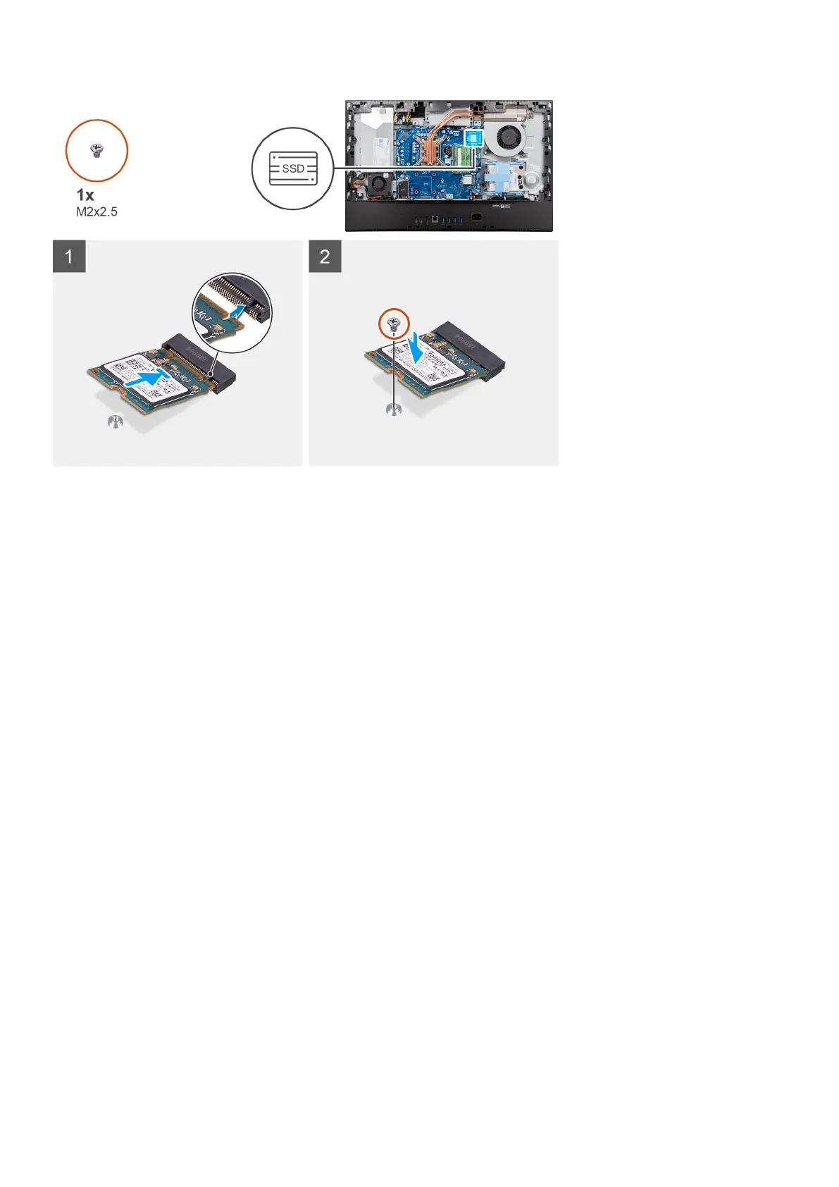 3. Replace the screw (M2x2.5) to secure the solid-state drive to the system board.