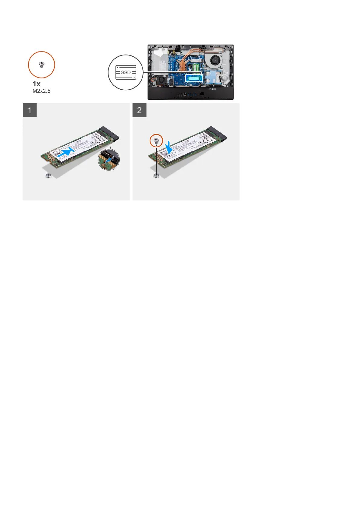 3. Replace the screw (M2x2.5) to secure the solid-state drive to the system board.