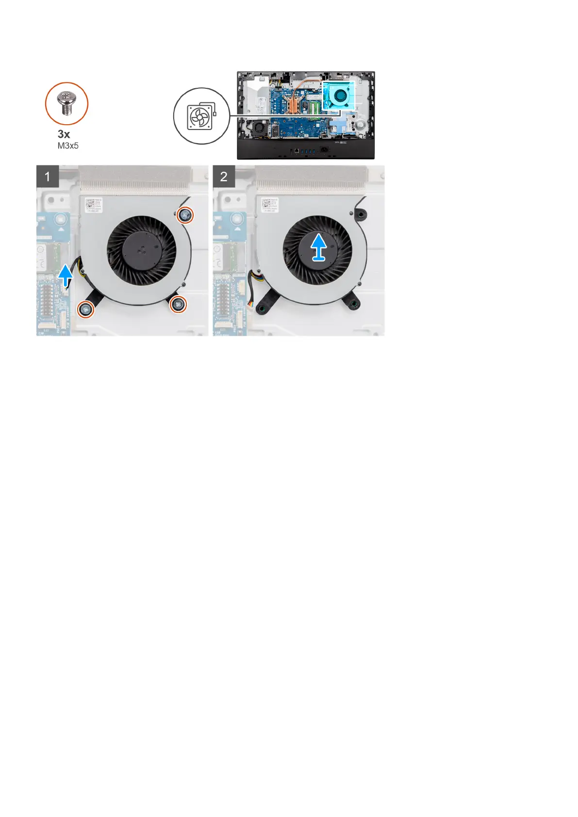 2. Remove the three screws (M3x5) that secure the system fan to the display-assembly base.