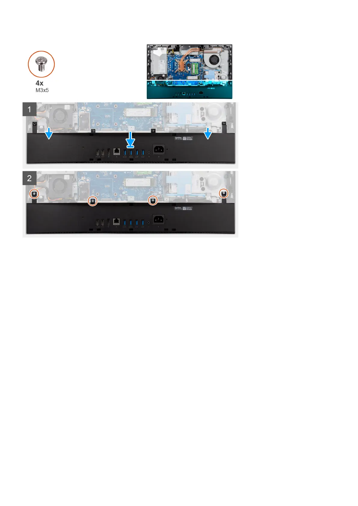 2. Replace the four screws (M3x5) to secure the bottom cover to the display-assembly base.