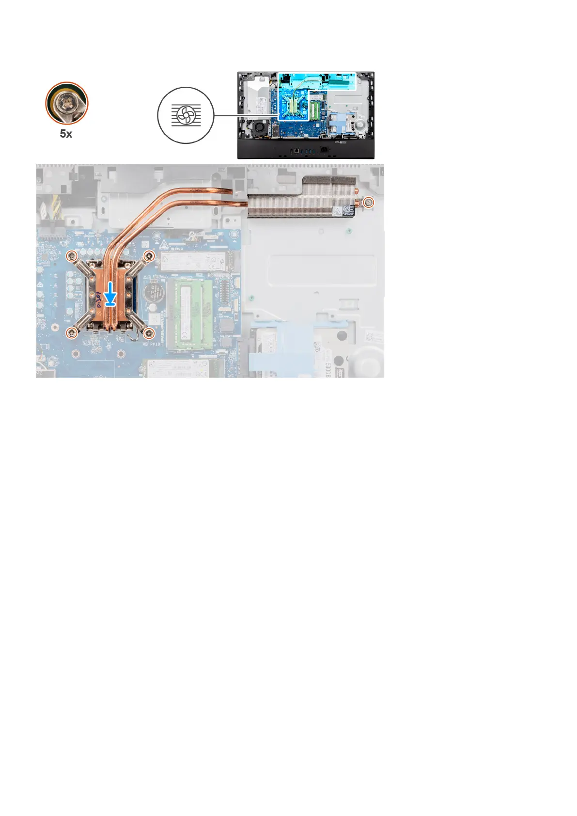 1. Align the screw holes on the heat sink with the screw holes on the system board and the display-assembly base.