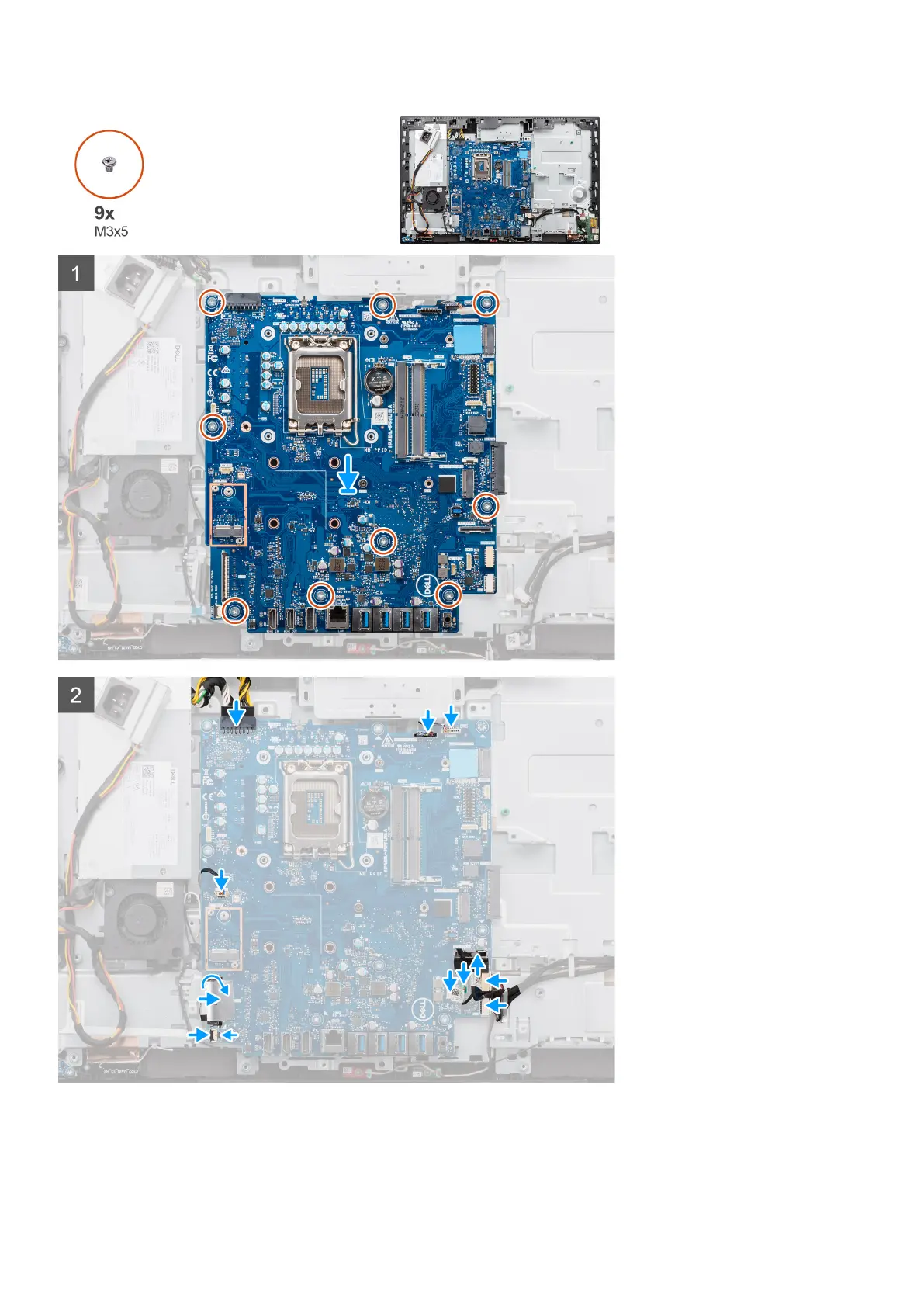 2. Replace the nine screws (M3x5) to secure the system board to the display-assembly base.
