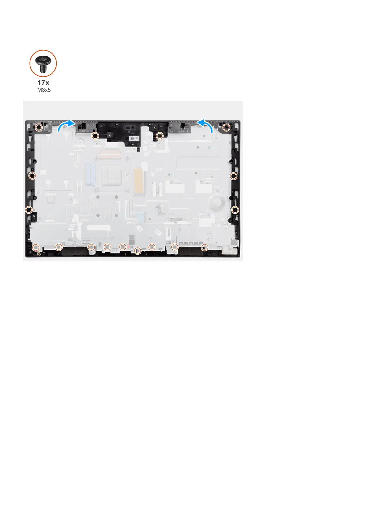 2. Replace the 17 screws (M3x5) to secure the middle frame to the display-assembly base.