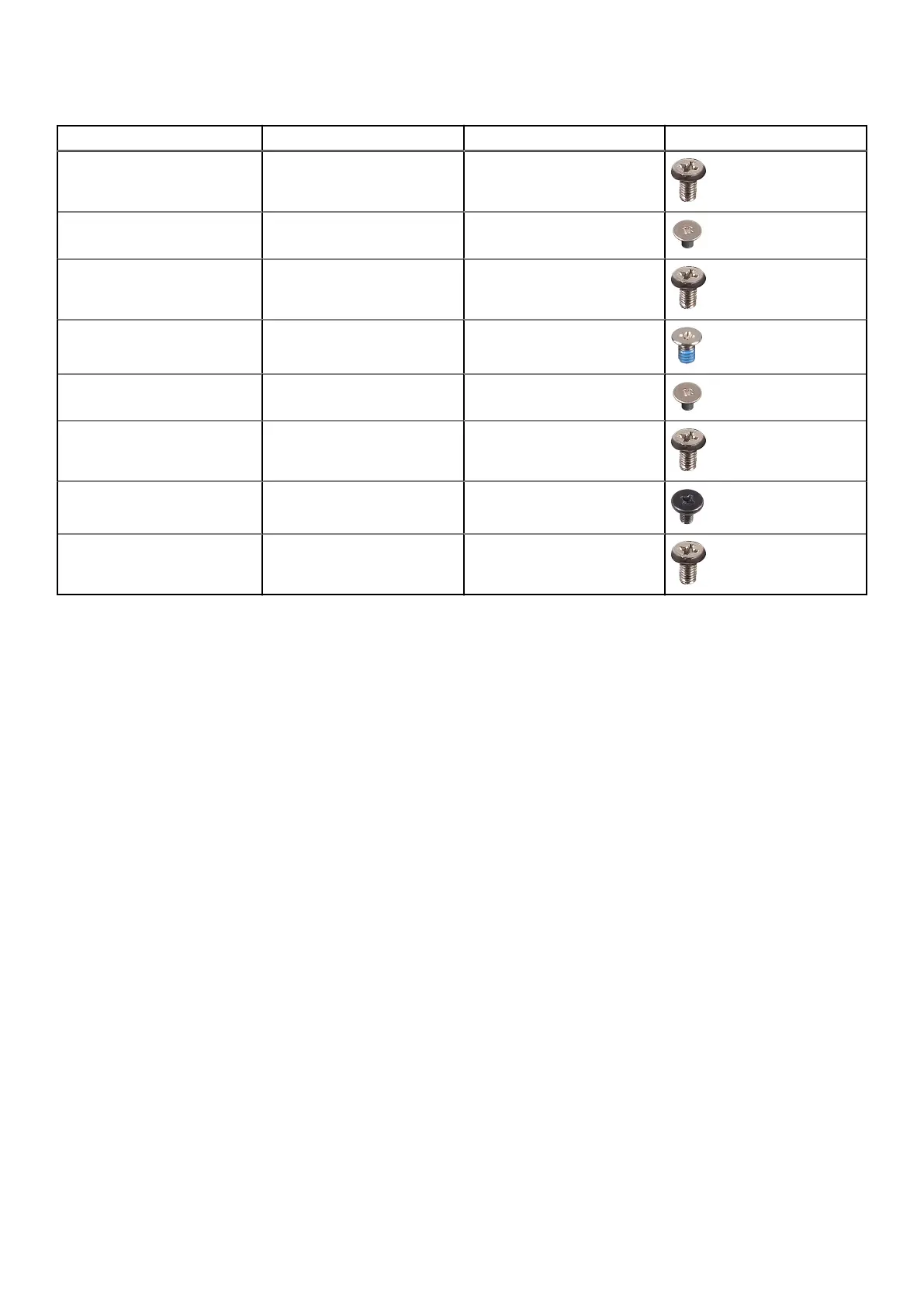 Table 1. OptiPlex 5490 All-in-One screw list (continued)