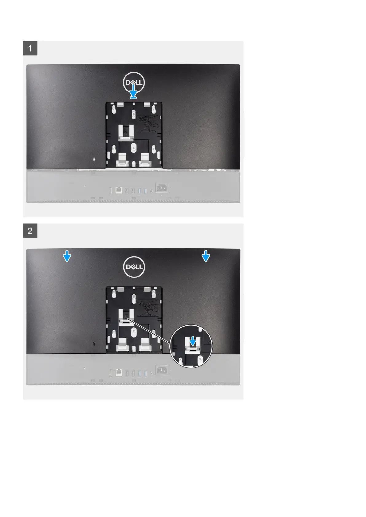 1. Place the back cover on the middle frame and system-board shield and align the tabs on the back cover with the slots on the