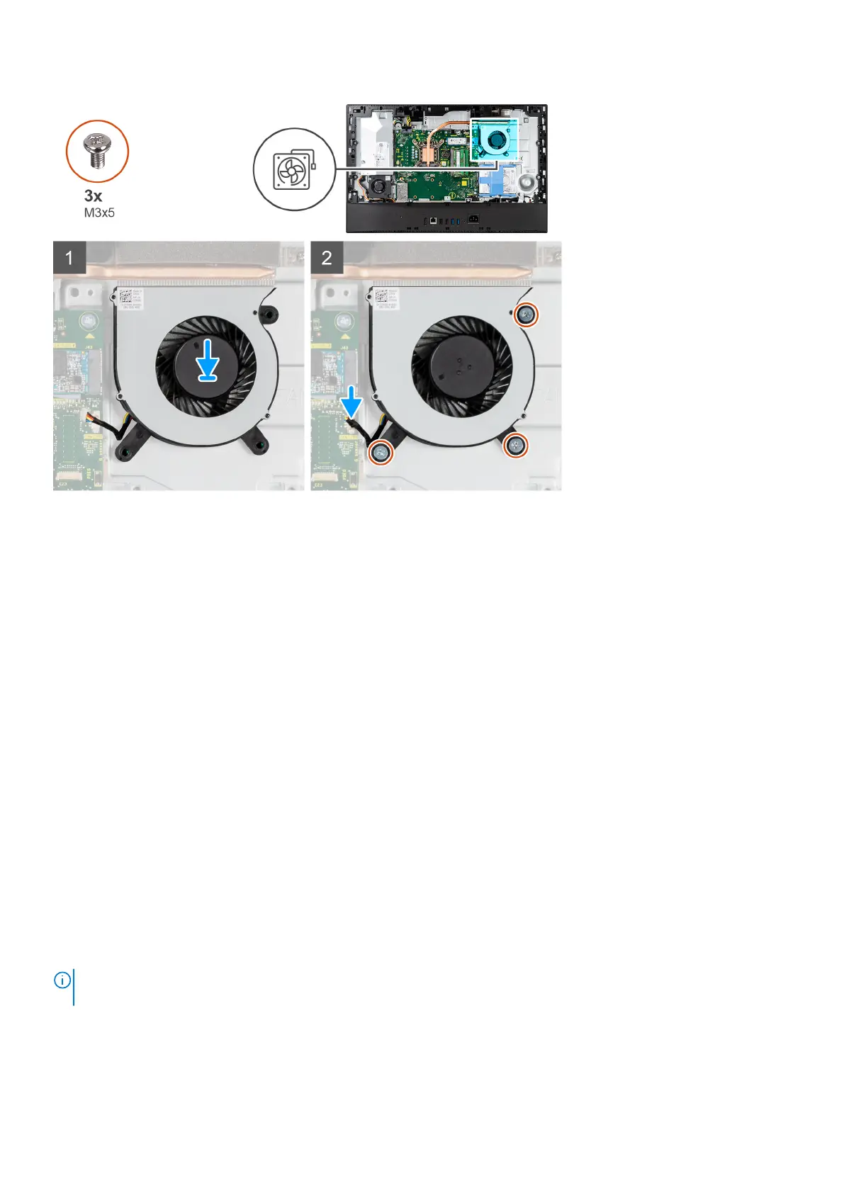 2. Replace the three screws (M3x5) to secure the system fan to the display-assembly base.