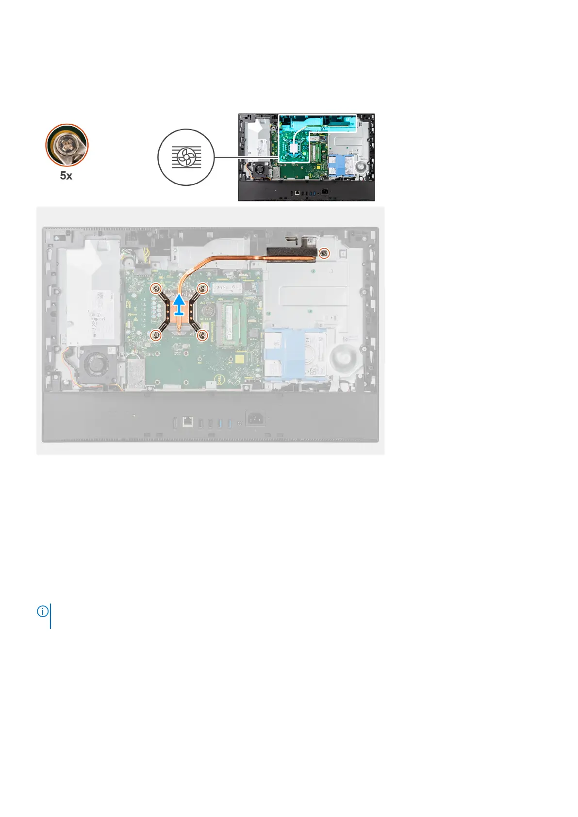 The following image indicates the location of the heat sink and provides a visual representation of the heat sink removal