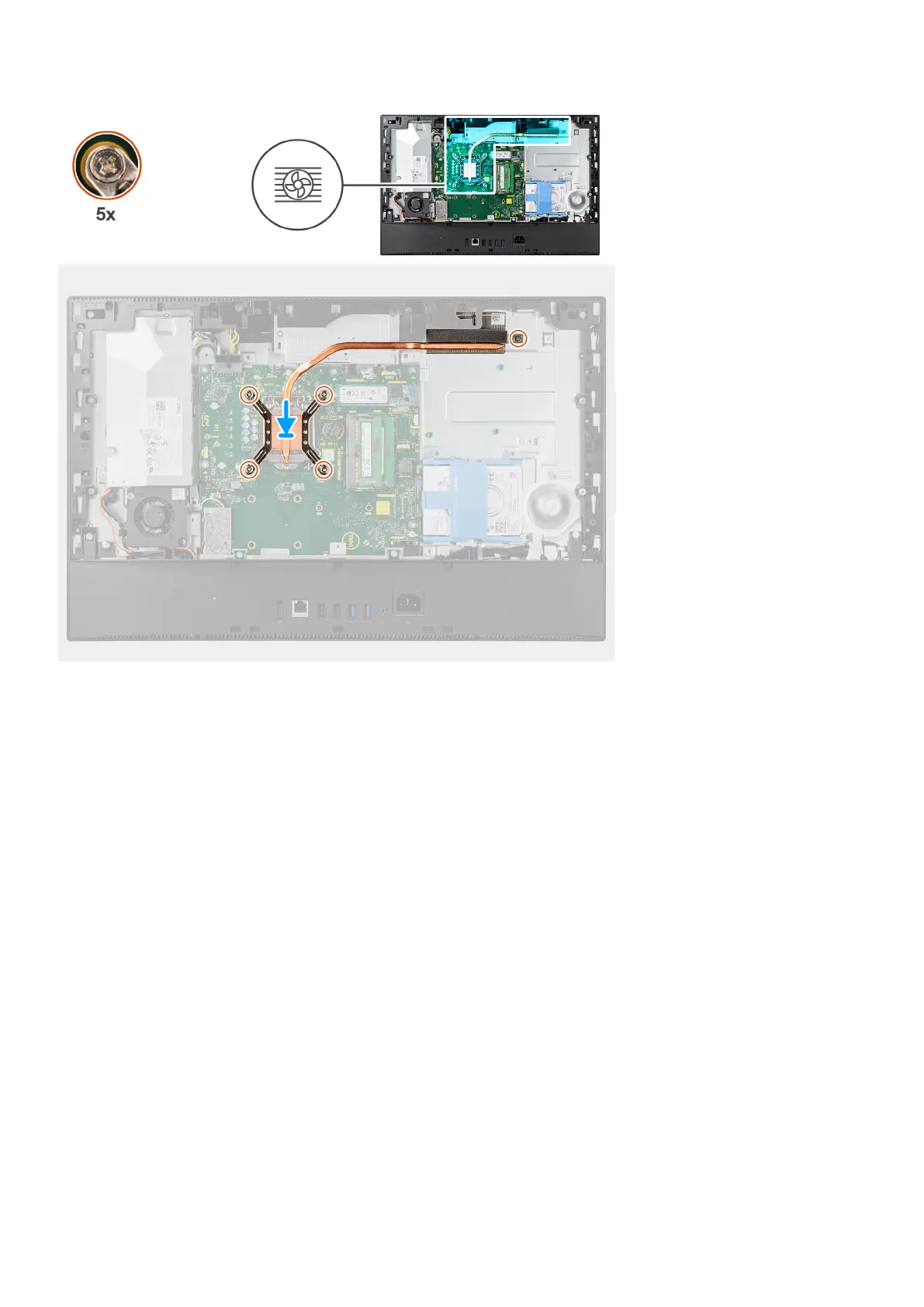 2. In sequential order (as indicated on the heat sink), tighten the five captive screws that secure the heat sink to the system