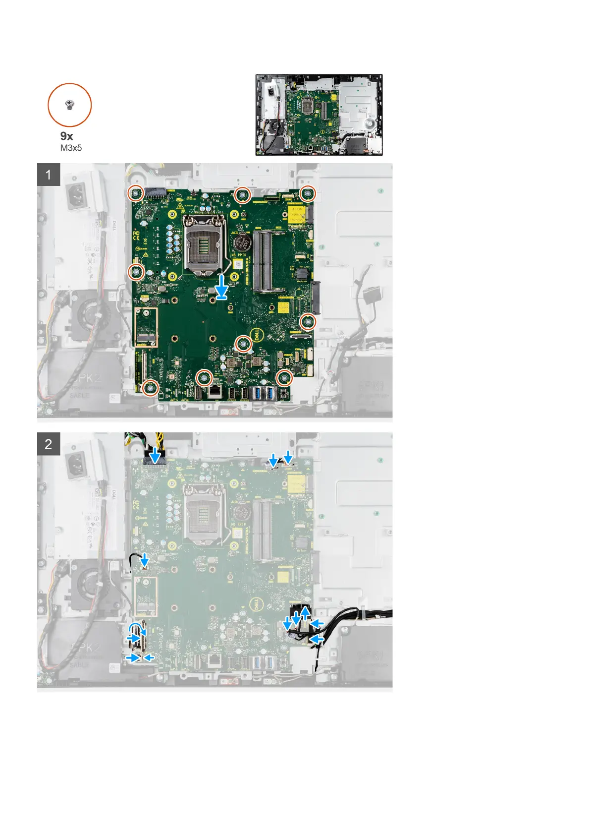 2. Replace the nine screws (M3x5) to secure the system board to the display-assembly base.